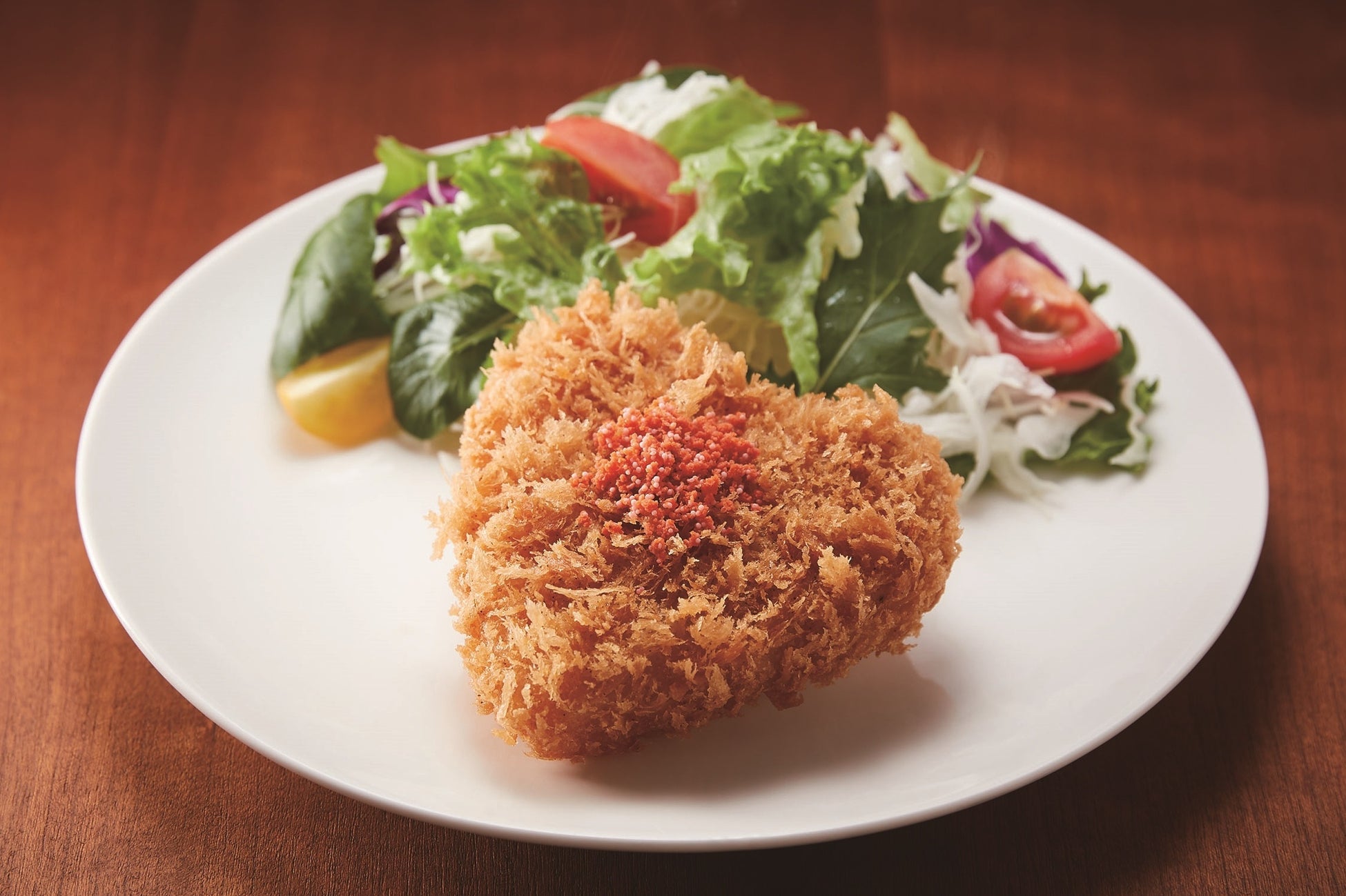 甘みのある男爵いもに、バターのコク、明太子の旨みがアクセント。お酒にも合うテイストに仕上げました。日ごろの愛や、感謝の気持ちを伝えるハート形のコロッケです。
