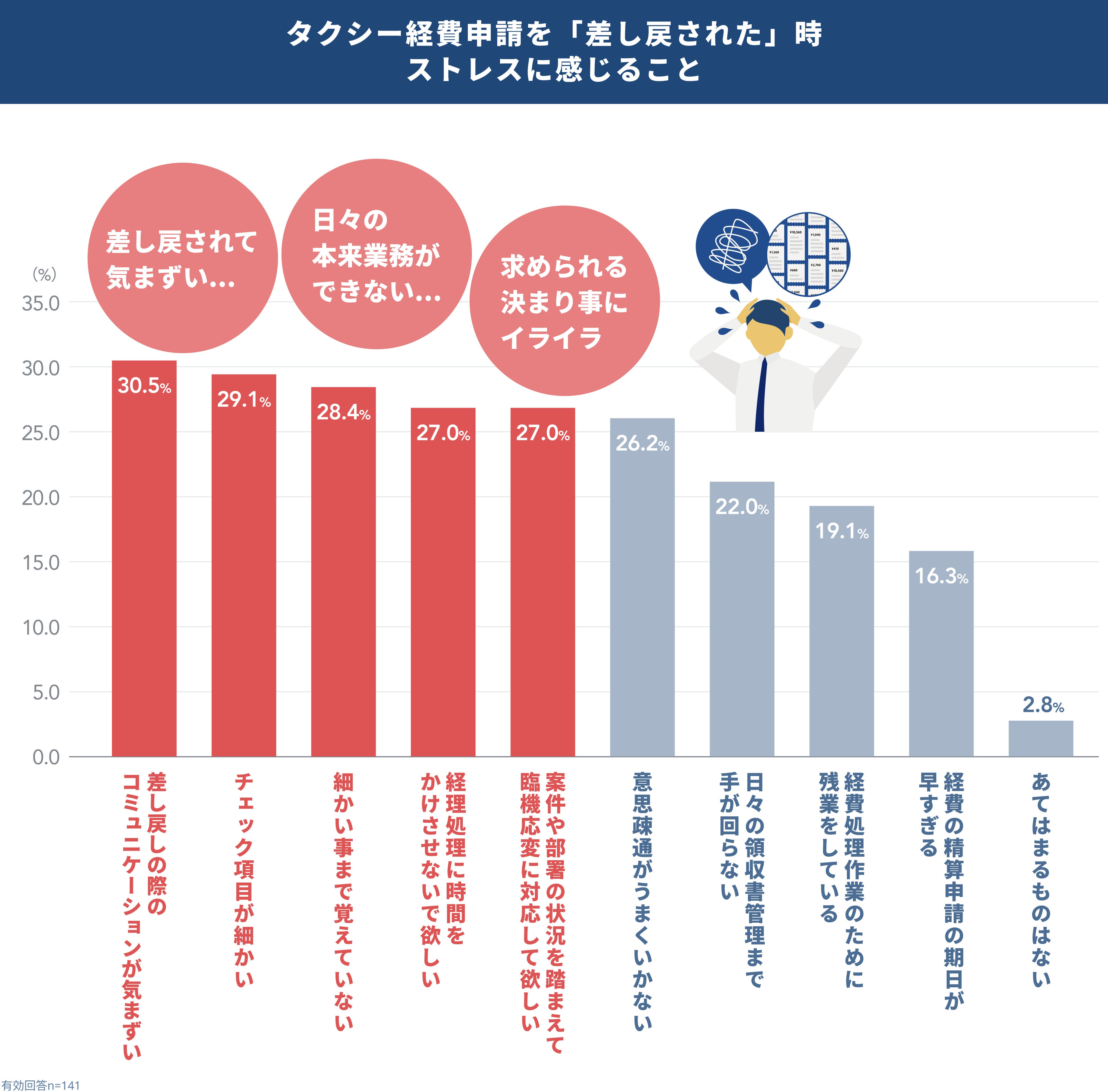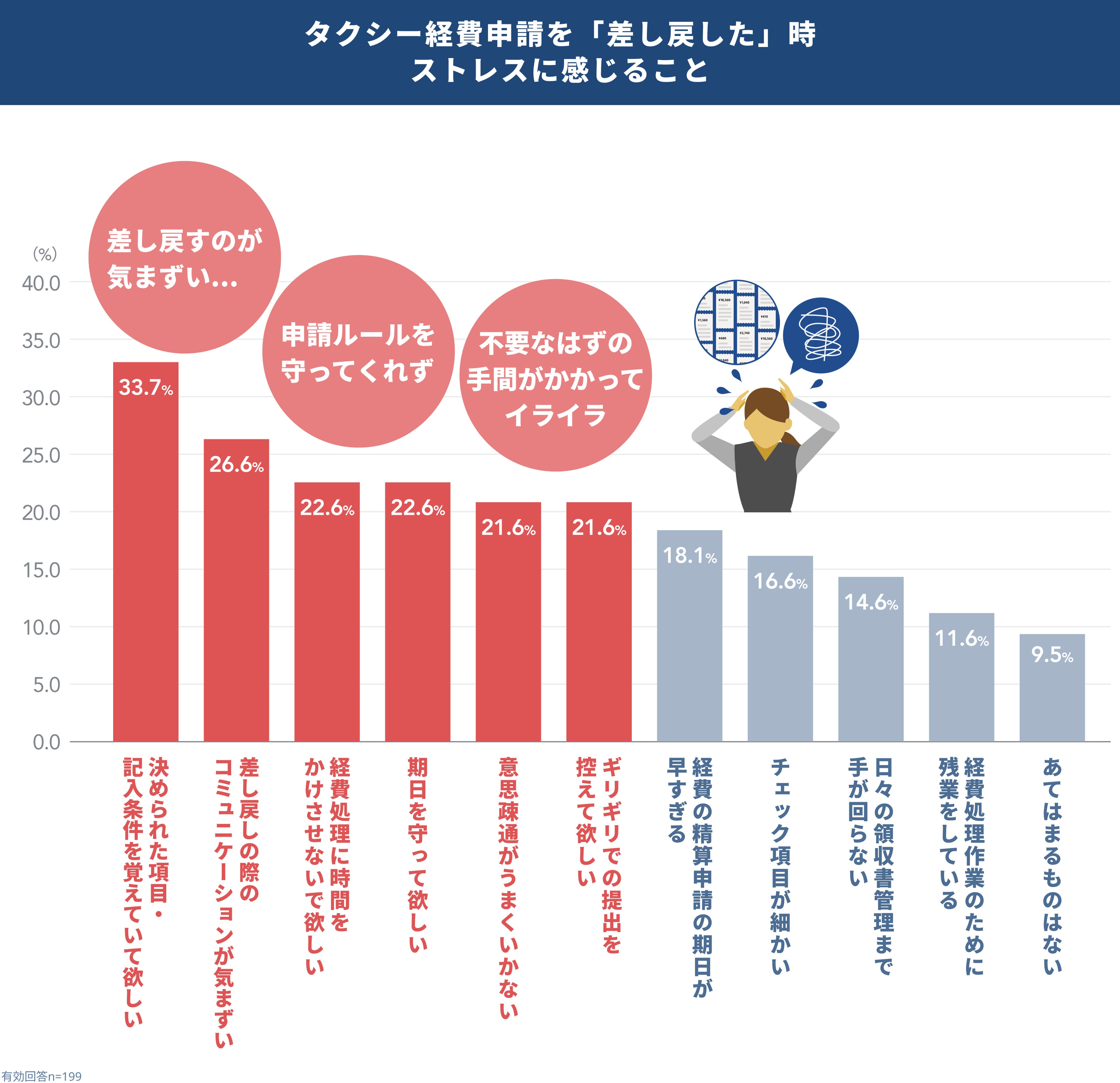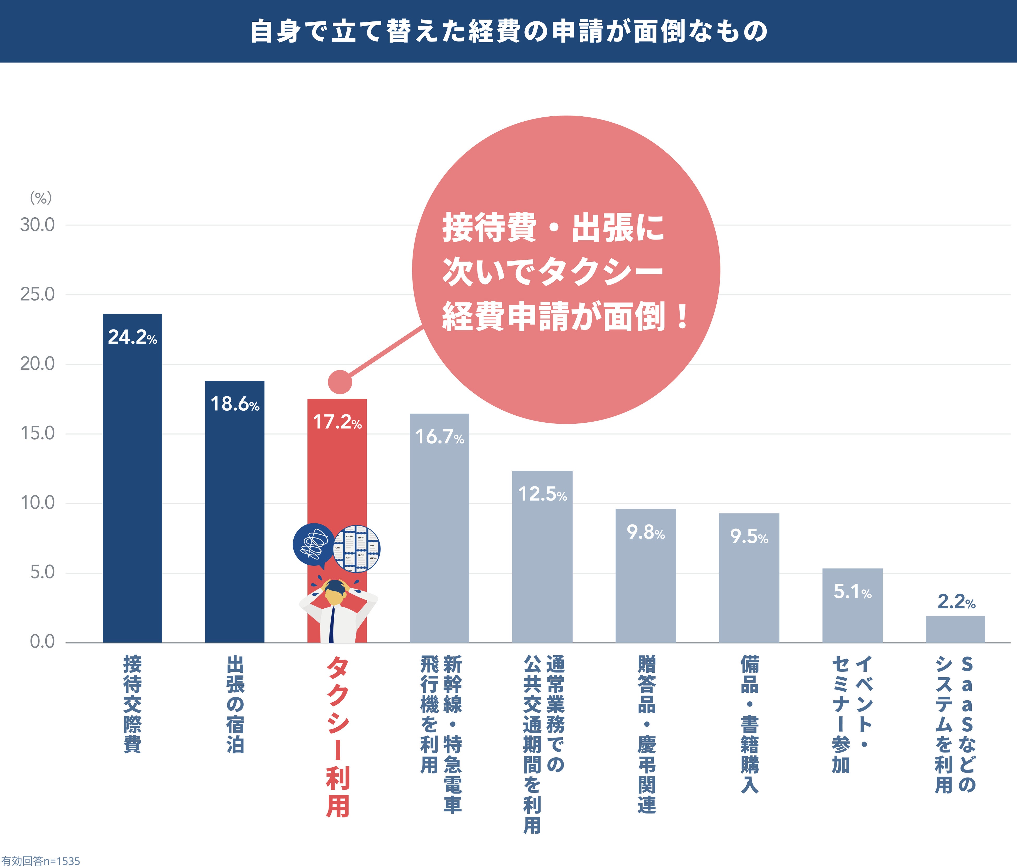 3人に1人がタクシー経費の自腹経験あり!経費申請漏れや差し戻し時のストレス傾向などを調査
