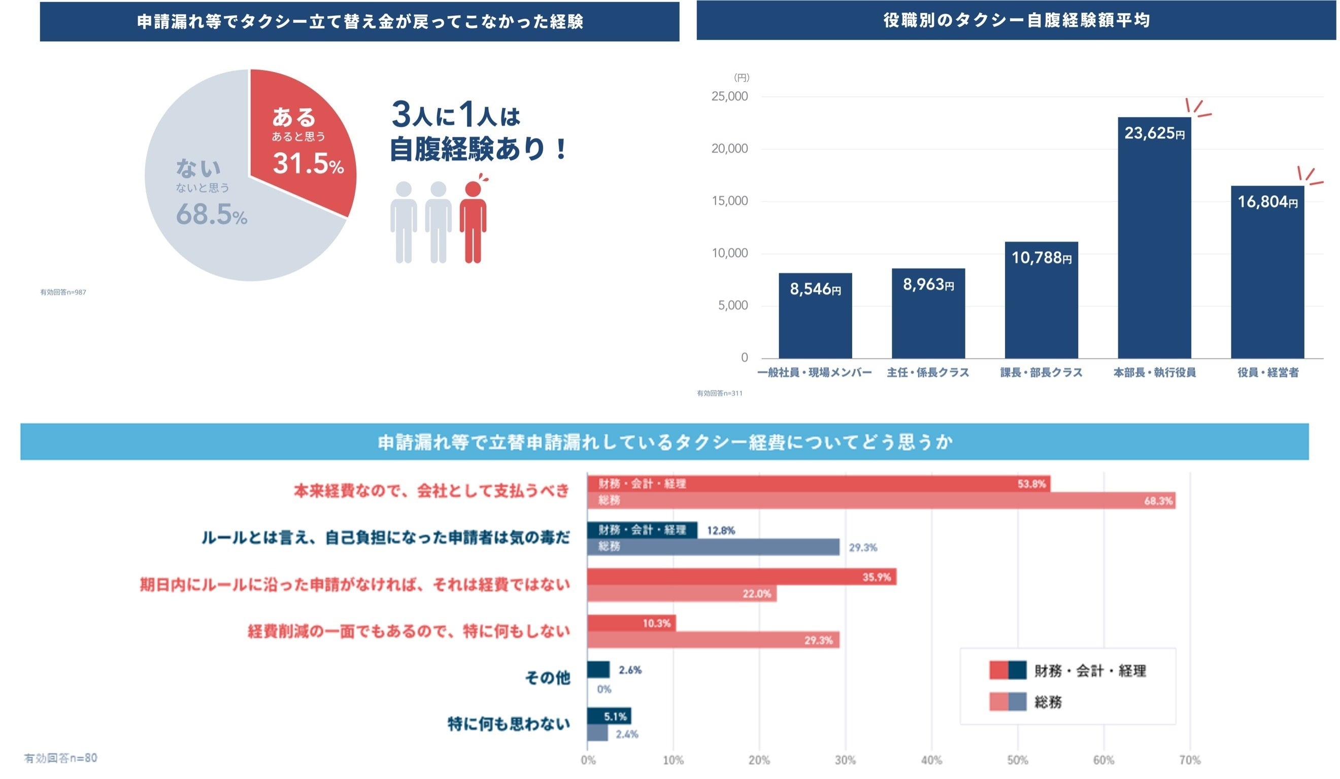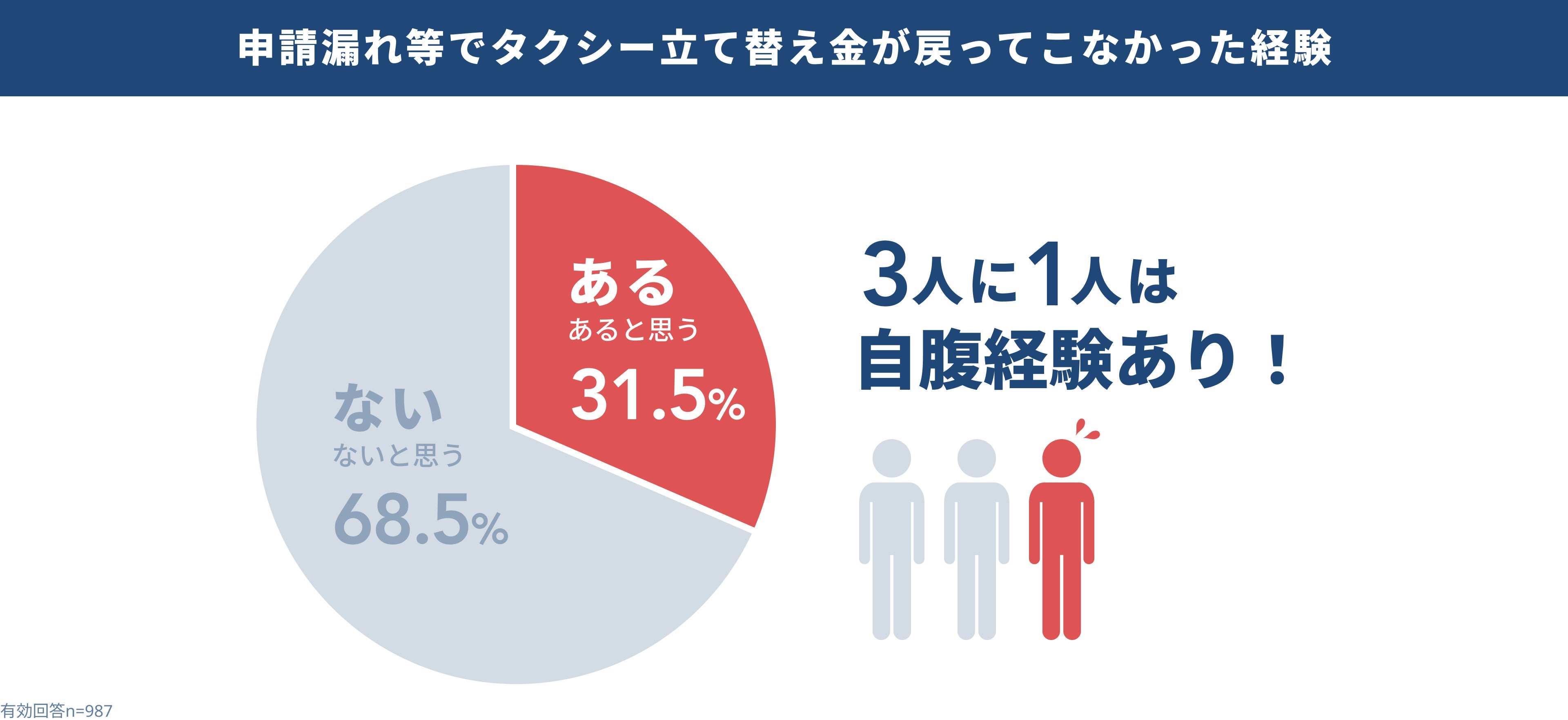 |調査結果2 3人に1人がタクシー経費の申請漏れでの自腹経験を持つ。