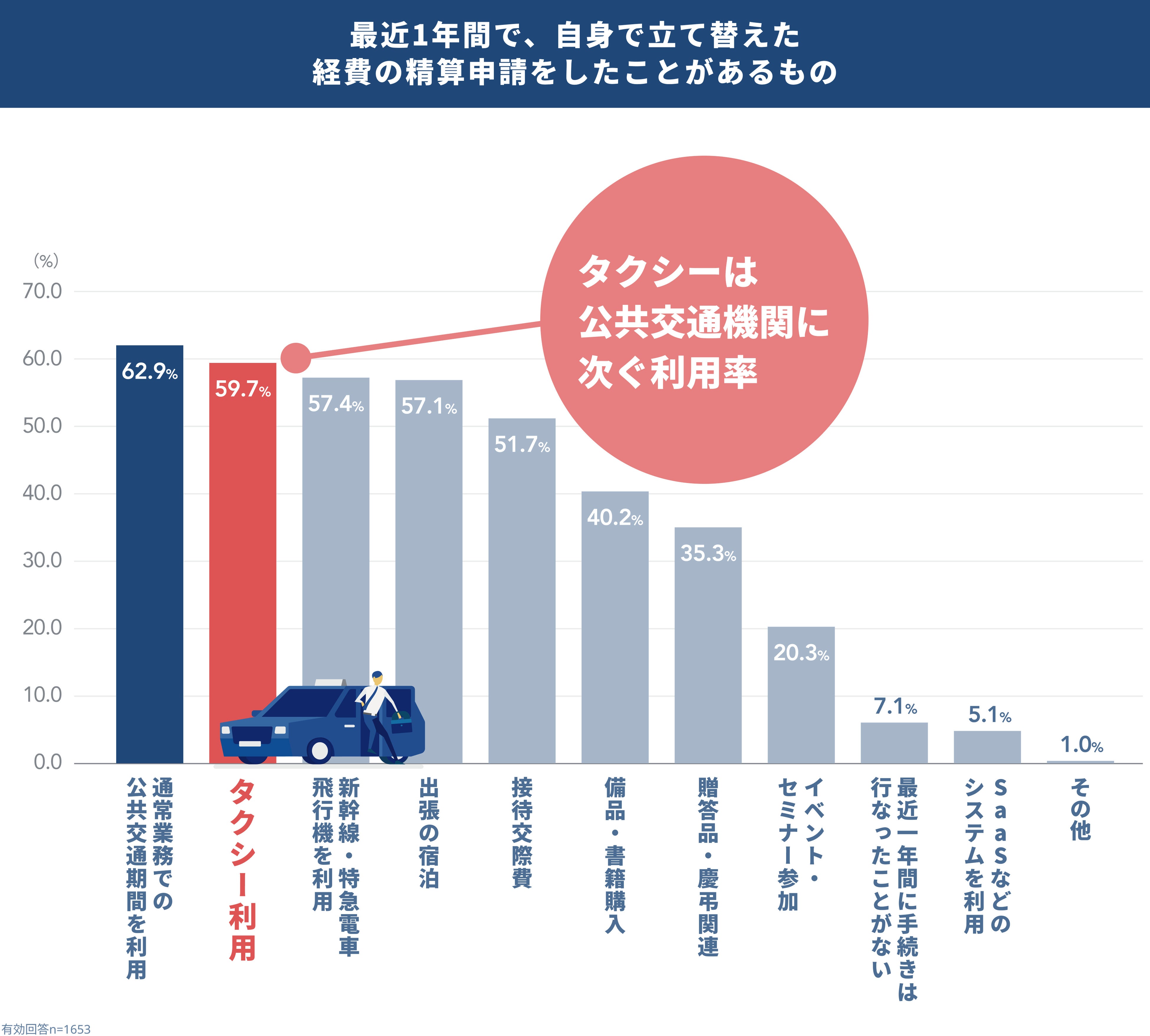 -3人に1人がタクシー経費の申請漏れで自腹を切ってしまった経験がある。