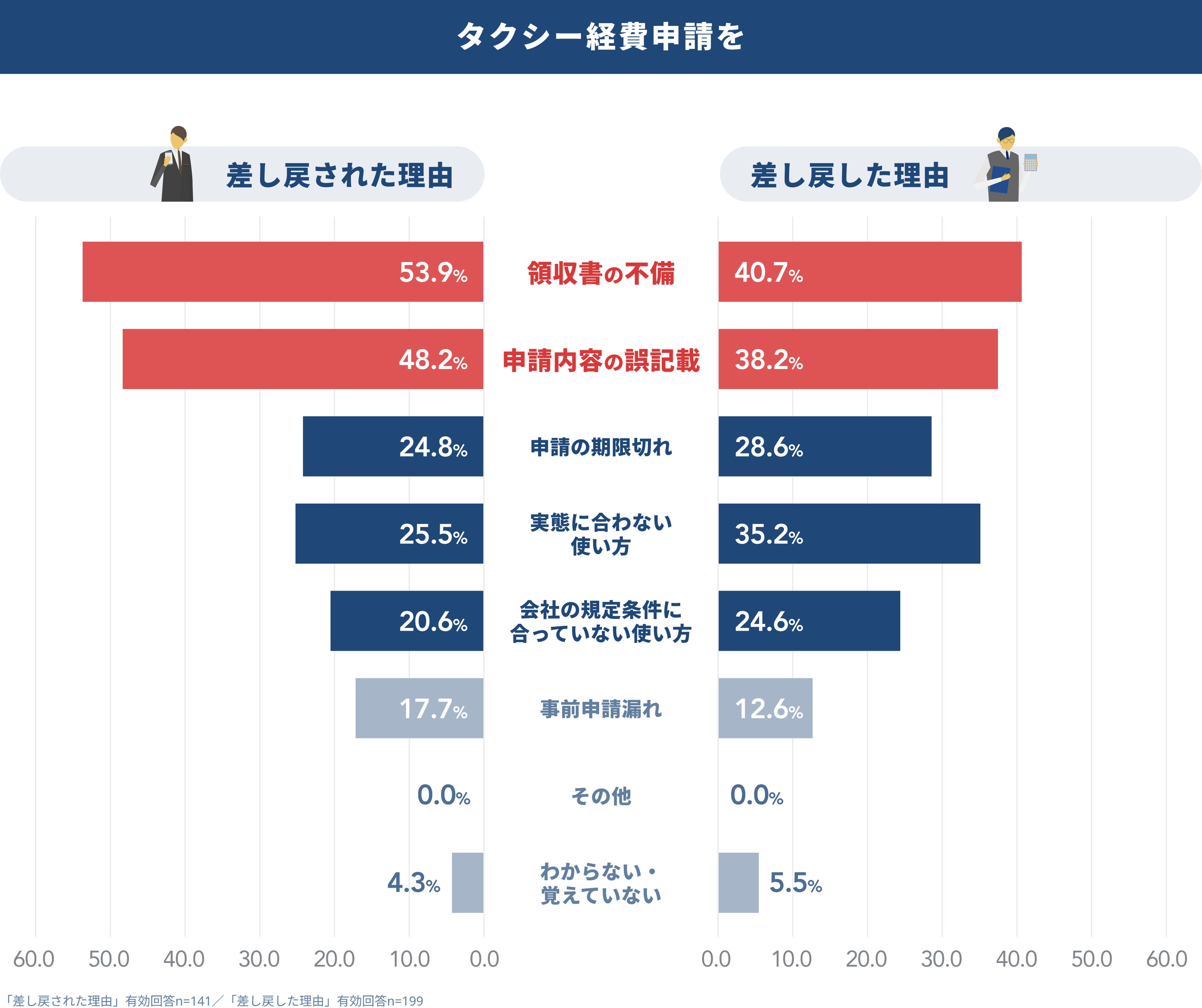 3. タクシー経費精算の差し戻し理由の背景は「領収書の不備」。