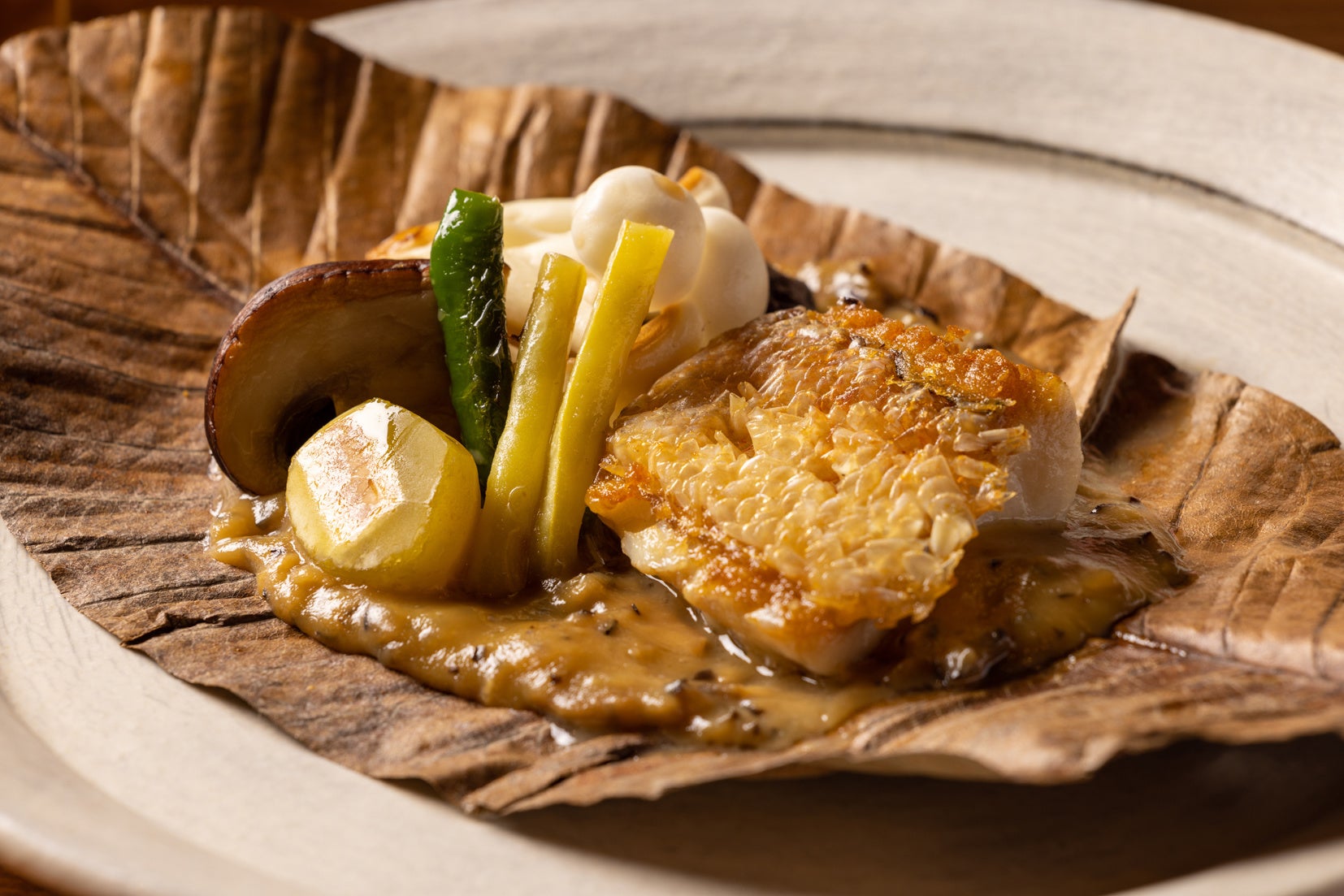 - 長崎県産 甘鯛と松茸の朴葉焼き
