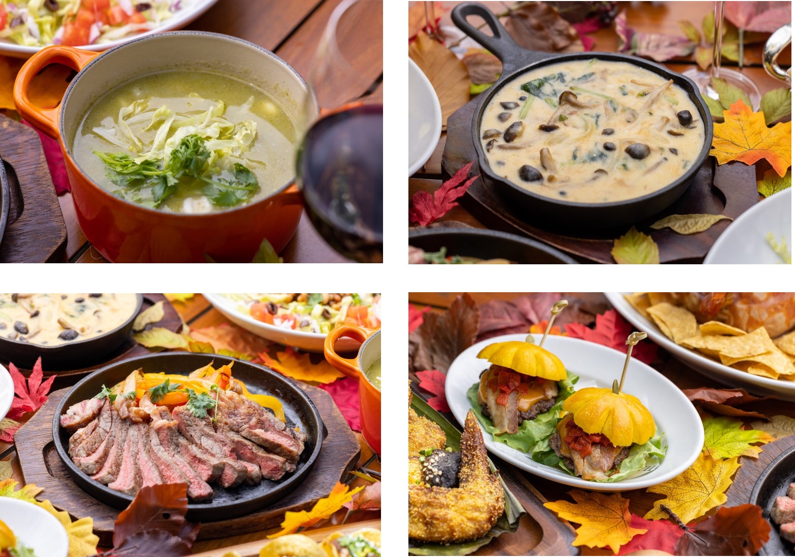 テラスで陽気にシェアしながらメキシカンフードを楽しむオーク ドア流の秋の収穫祭!アステカ文明から食べられる伝統料理やメキシカン チーズフォンデュなどボリューム満点の料理が登場。