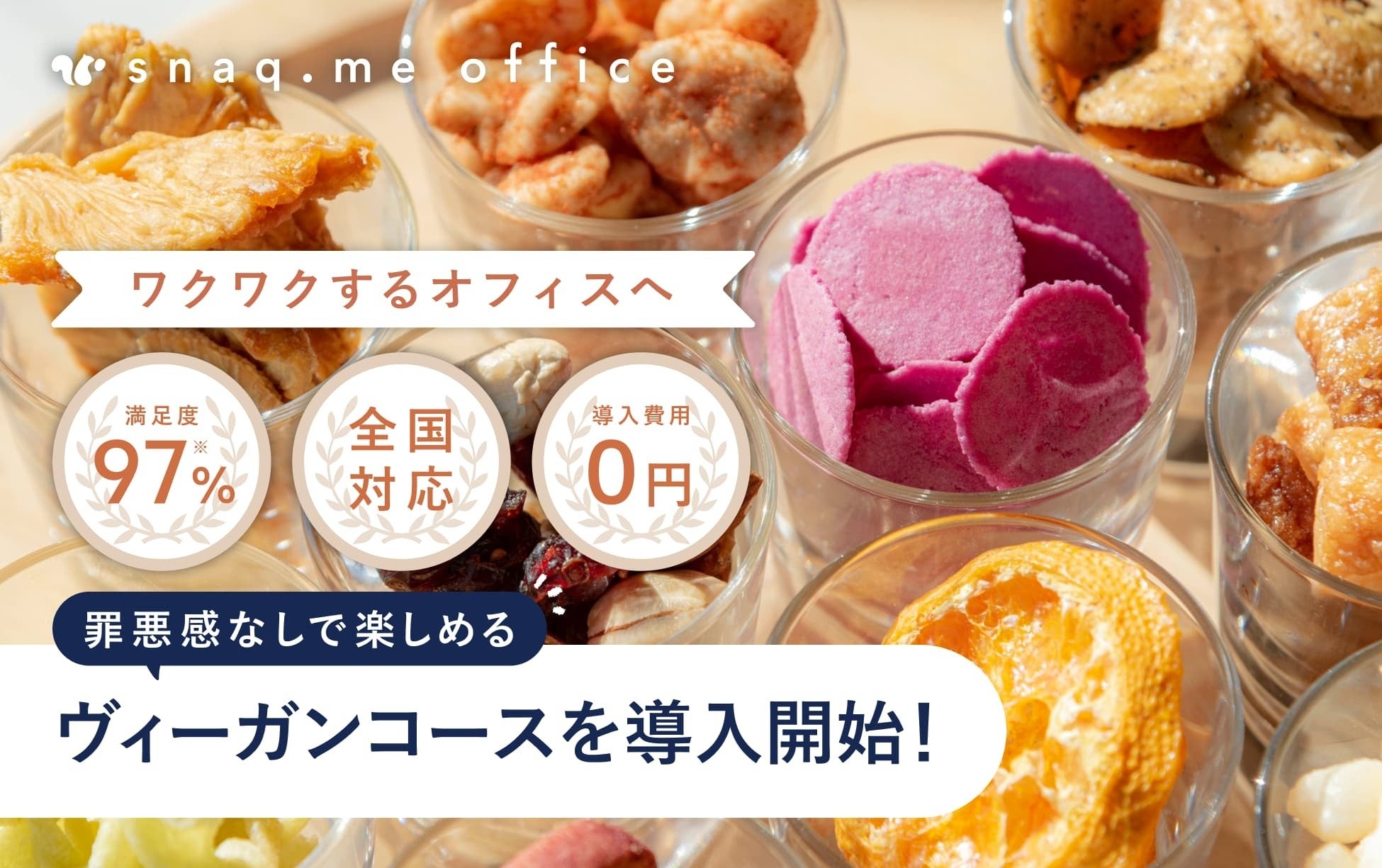 おやつの定期便「snaq.me」を運営する株式会社スナックミー(本社:東京都中央区 / 代表取締役:服部慎太郎)は、スナックミーの商品をオフィスにお届けするオフィス/法人様向けサービス「snaq.me office」に新たにヴィーガンコースを追加いたしました。