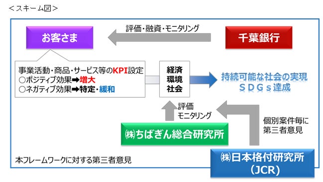 融資検討時に実施する評価は、当行とグループ会社である株式会社ちばぎん総合研究所が共同して行い、事業者さまのKPI(目標)設定やその進捗管理を支援します。また、当行と株式会社ちばぎん総合研究所が共同して実施した評価について、株式会社日本格付研究所より第三者意見※1を取得することで客観性を担保します。