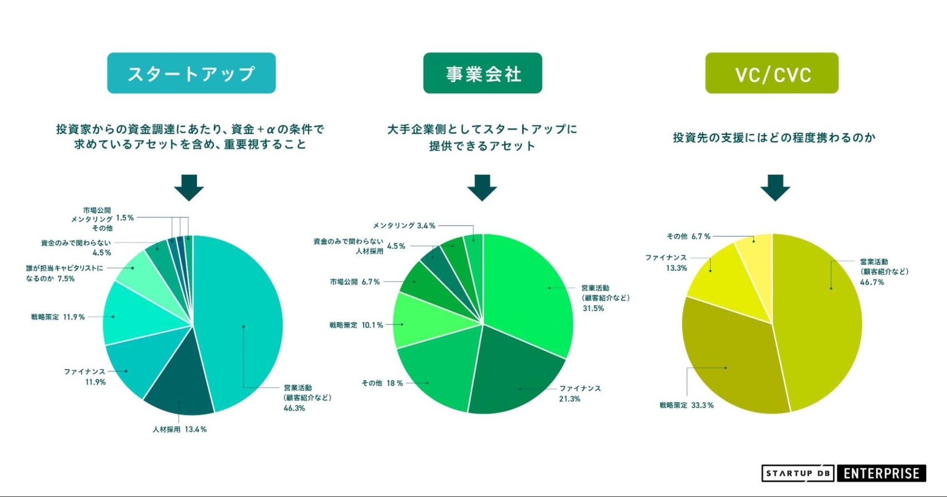 また、VC/CVCの33.3%が「戦略策定」と回答しており、事業会社の10.1%よりも20%以上高い結果となっています。