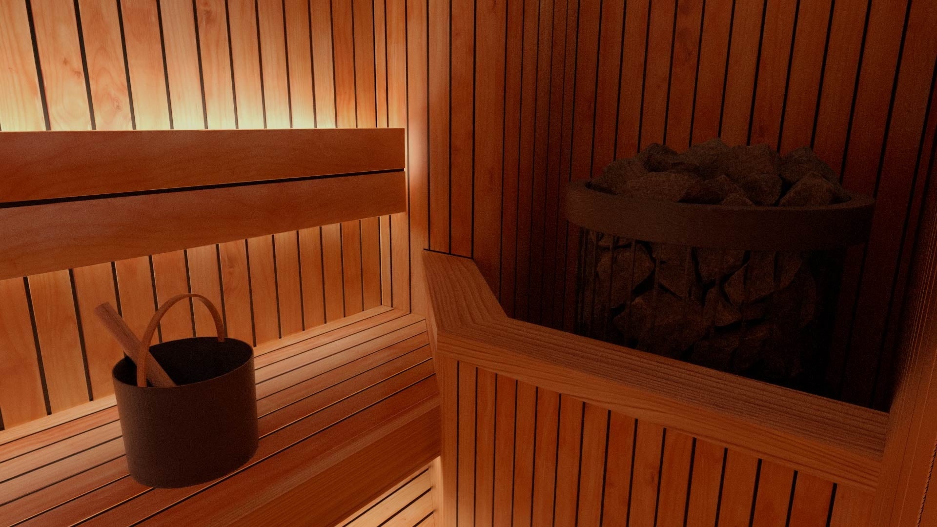 最大110℃にまで達するサウナ室は、チェックイン直後でもお楽しみいただけるよう、常時スタンバイされています。お客様の好みに合わせて、高温から低温まで温度を調整することができ、Bluetooth接続により音声コンテンツを楽しむことも可能です。さらに、部屋に用意された約20種類のアロマ水から香りをお選びいただき、サウナストーブへのロウリュやサウナ室の壁へのウォーリュなどに活用することもできます。