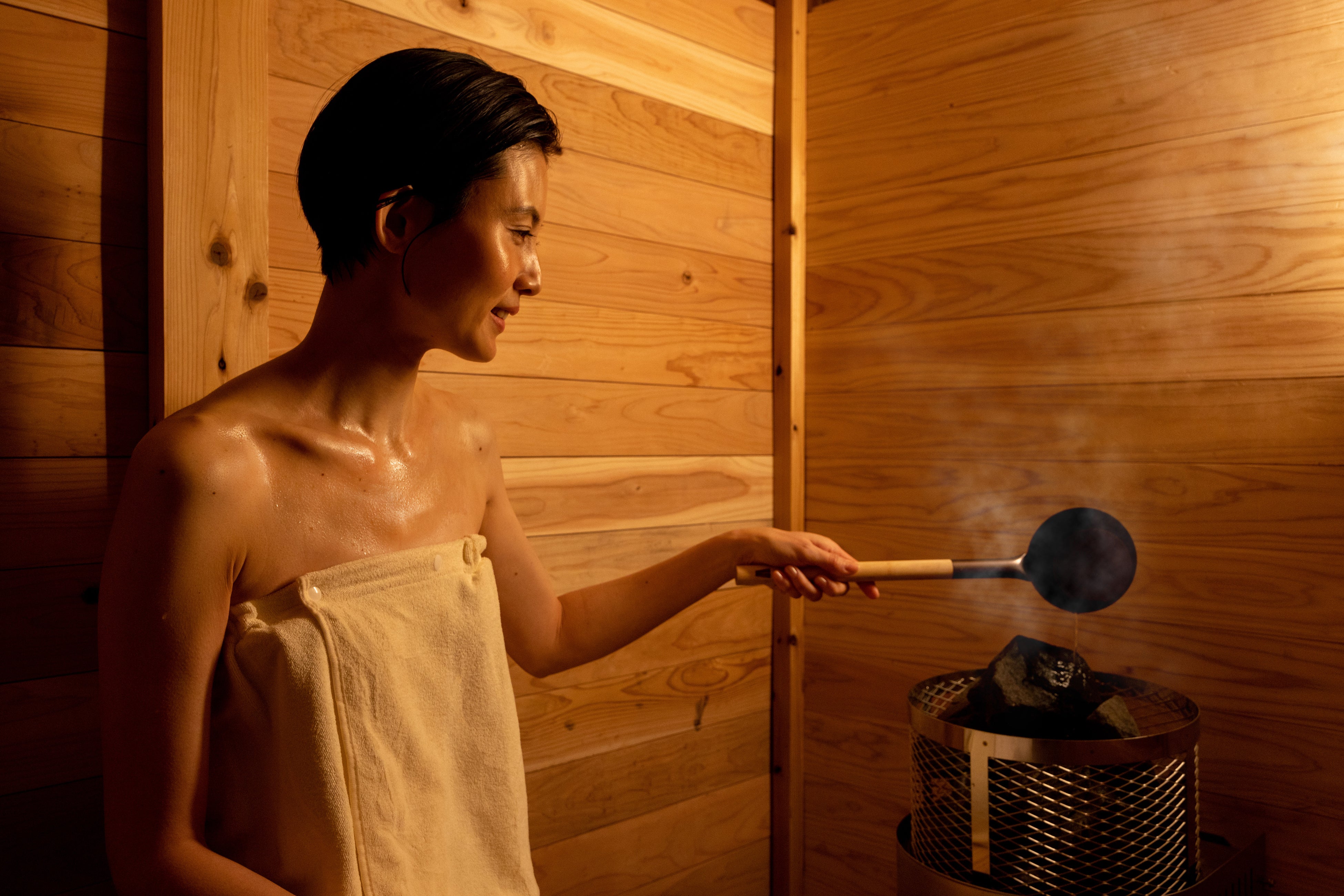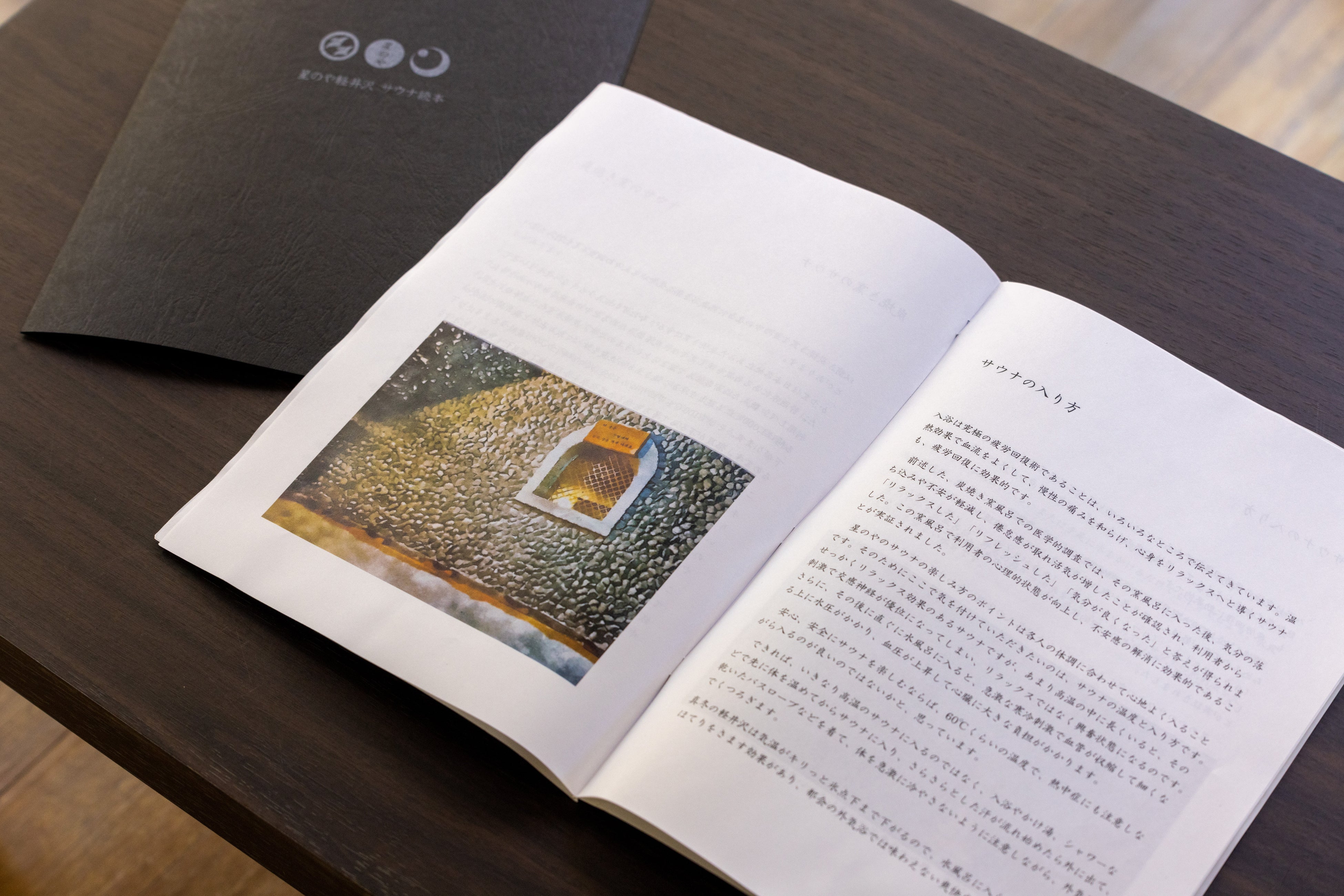 サウナは正しく入浴することで、血行が促進されて新陳代謝が上がり、免疫力が高まることや(*3)、睡眠の質の改善も報告されています(*4)。一方で、入浴方法が適切でないと、脱水や体に高い負荷をかけるなどのリスクを伴います。温泉療法専門医の早坂信哉氏監修の本プログラムでは、ガイドブック「星のや軽井沢 サウナ読本」を読むことで、体にかかる負担を最小限に抑えた安心で心地よい入浴法を学びながら、サウナを体験することができます。