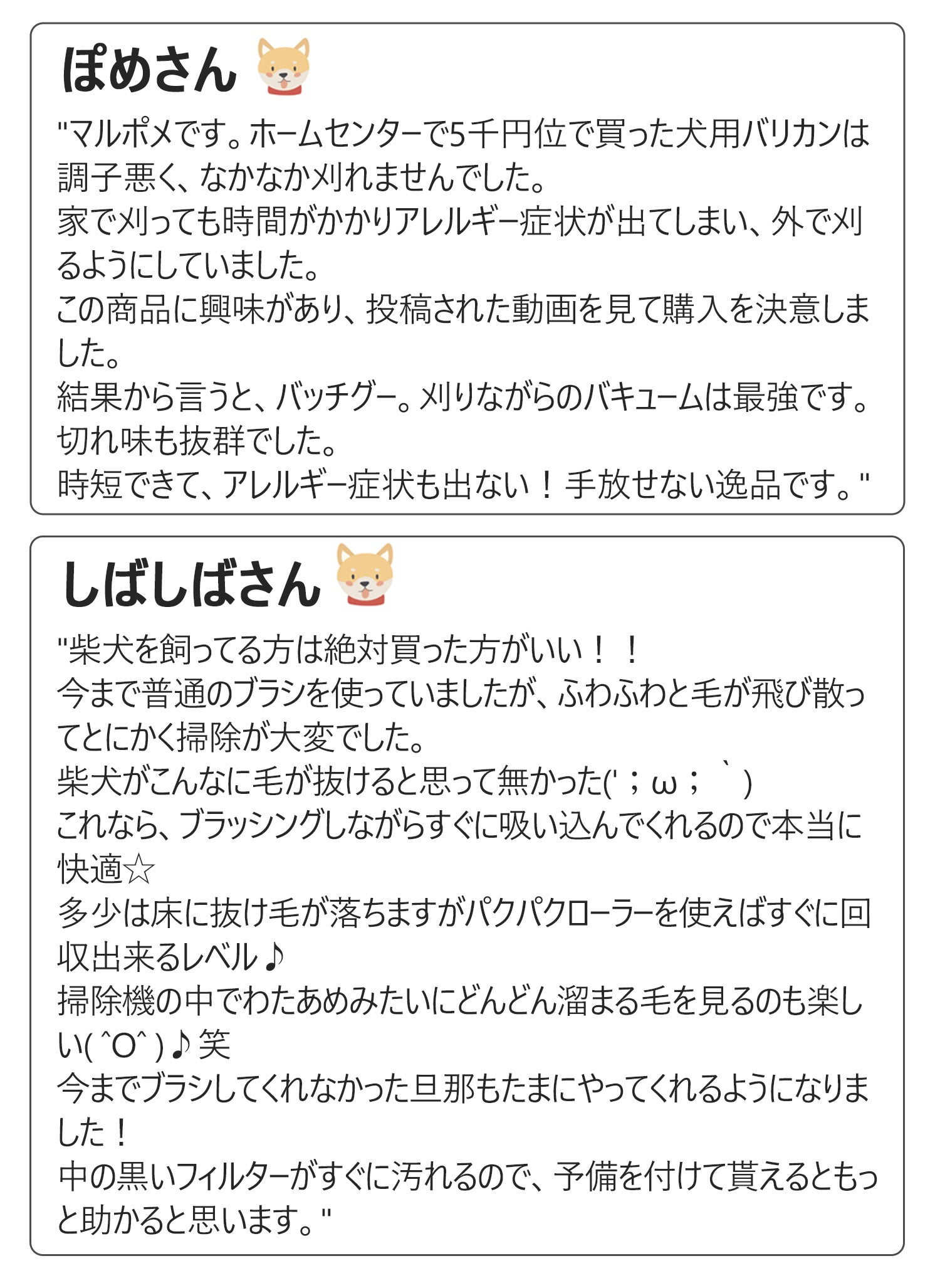 そんな想いを元に、 より多くの飼い主さまからのニーズを集め、 全部で5つの交換用アタッチメントを作りました 。 ブラッシングやカットしながら⽑を自動回収し、 抜け⽑のお掃除が不要になるように設計しています。自宅でこまめにヘアケアできるから、イヌ・ネコの皮膚の衛生管理に効果的です。この製品ができてからは、マークのモジャモジャの毛がスッキリ。飼い主であるわたし達もラクチンになりました。もし、ご自宅で愛犬・愛猫のヘアケアをお考えであれば、ぜひご使用ください。