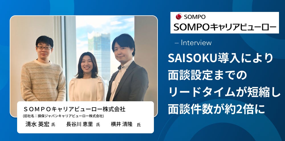 面談設定までのリードタイムを平均40時間以上短縮し、面談件数が2倍に。SOMPOキャリアビューローの活用事例を公開