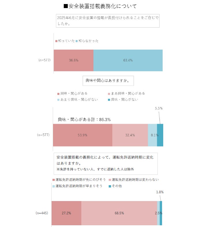 「2025年6月からの安全装置搭載の義務化」認知率は4割弱に留まったが、