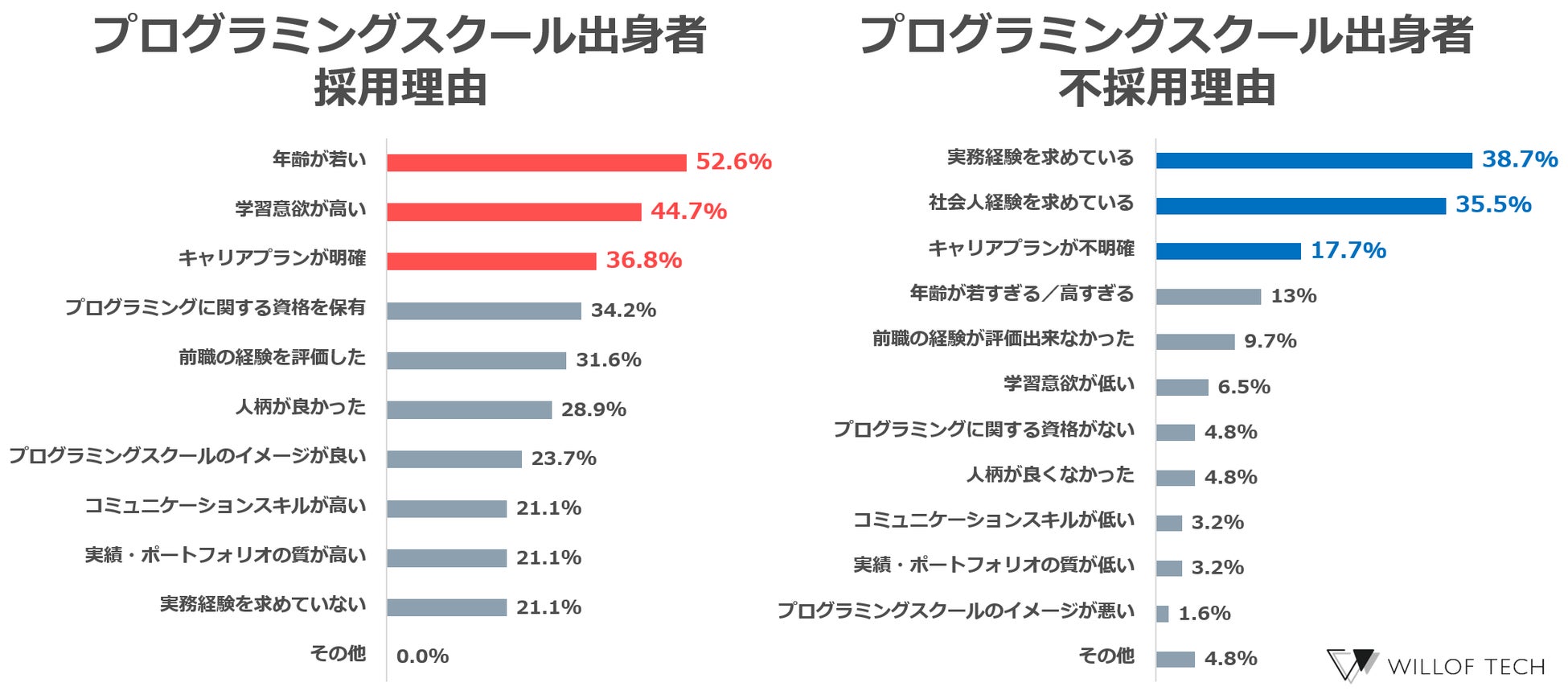 - プログラミングスクール出身者の採用は約4割が実績あり!重要なのは「明確なキャリアプラン」の有無