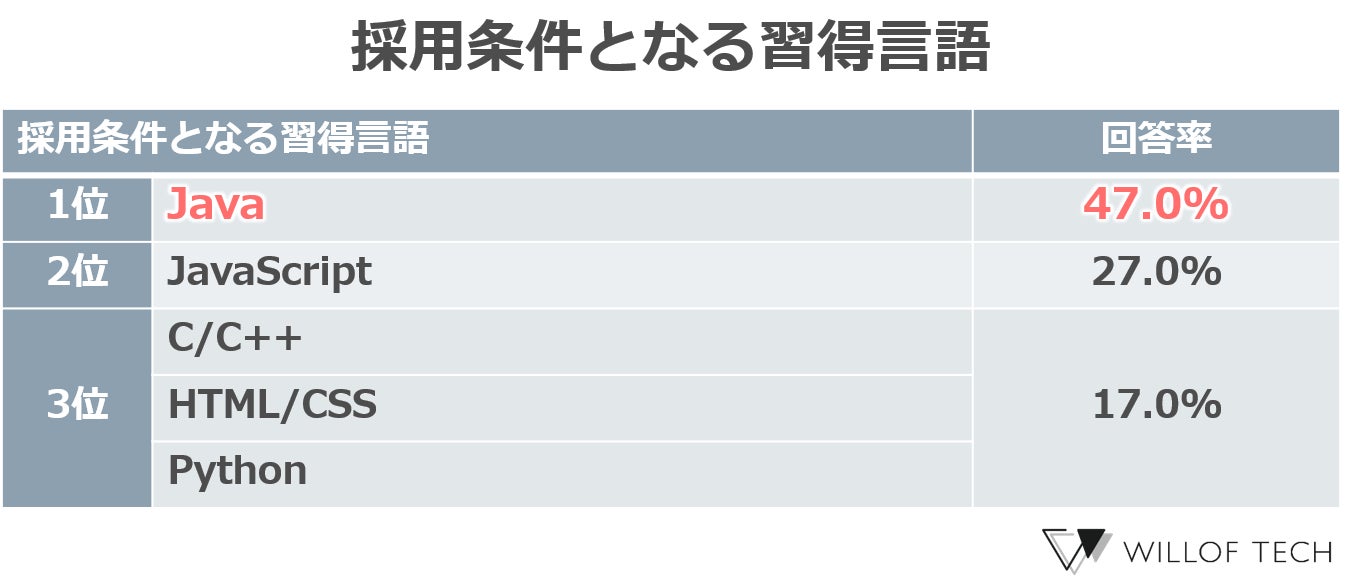 - 中途ITエンジニアの採用条件となる言語ランキング1位は「Java」!3位に「Python」がランクイン