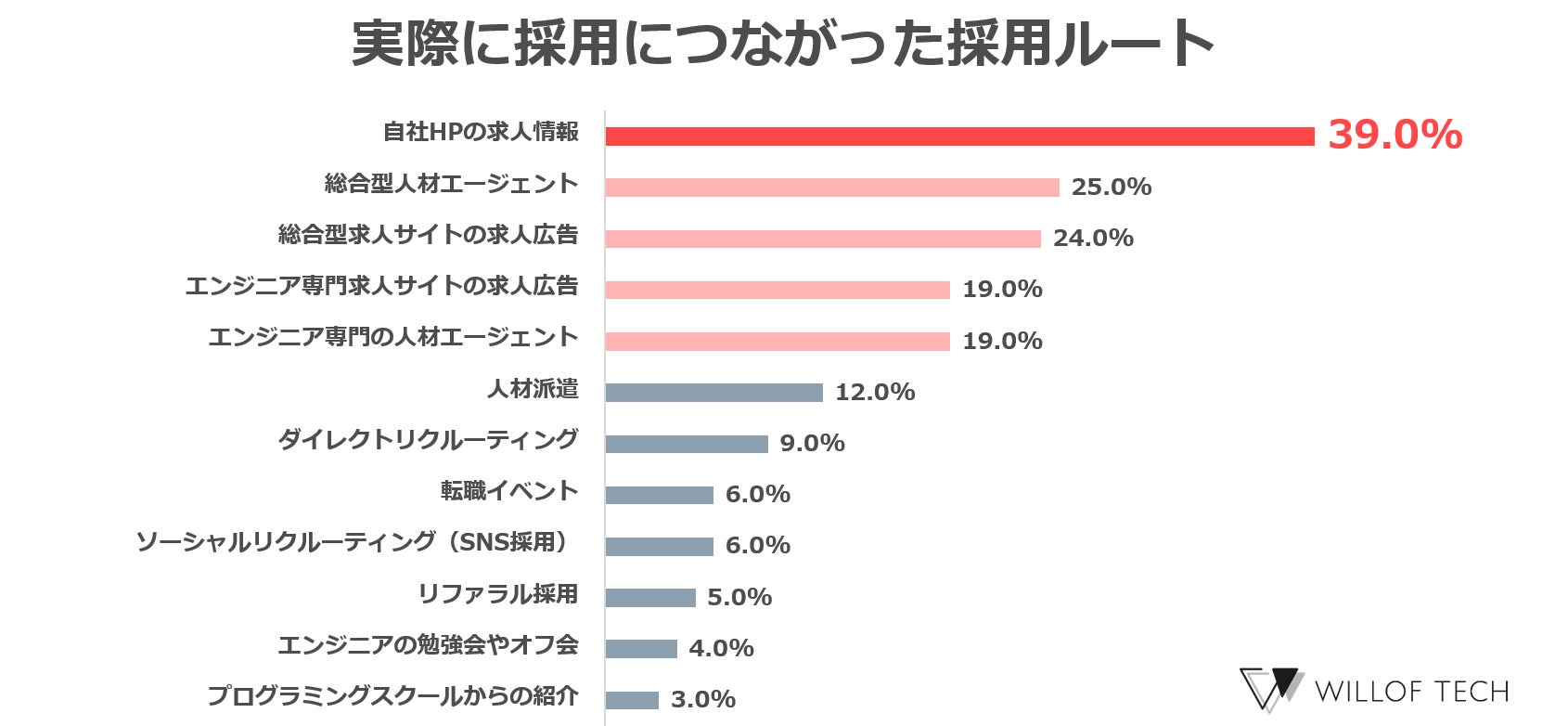- 中途採用に成功した採用ルート1位は「自社HP」!次いで「人材エージェント」と「求人サイト」