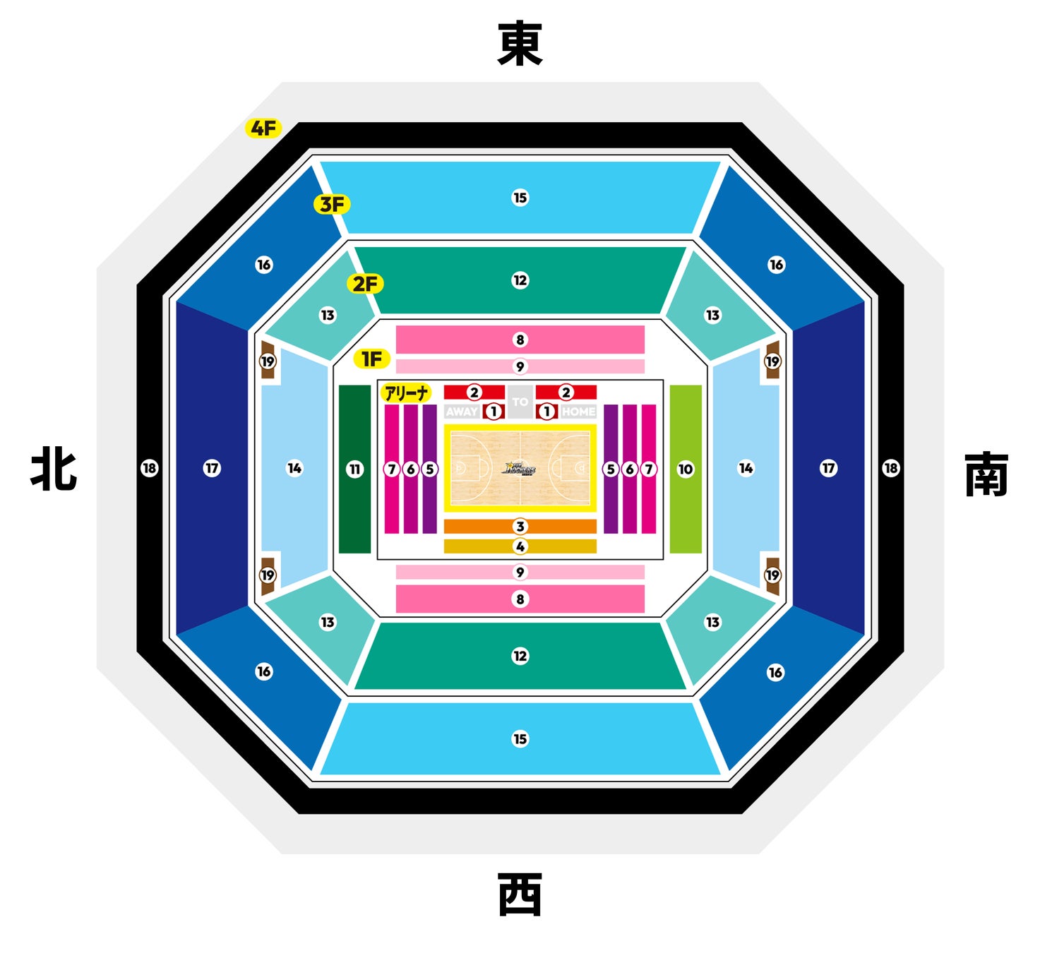 ※「⑨1Fスタンドサイド(見切れ)」は前方に座席が設置される影響により、コートが一部見づらい場合がございます。あらかじめご了承のうえ、お買い求めください。