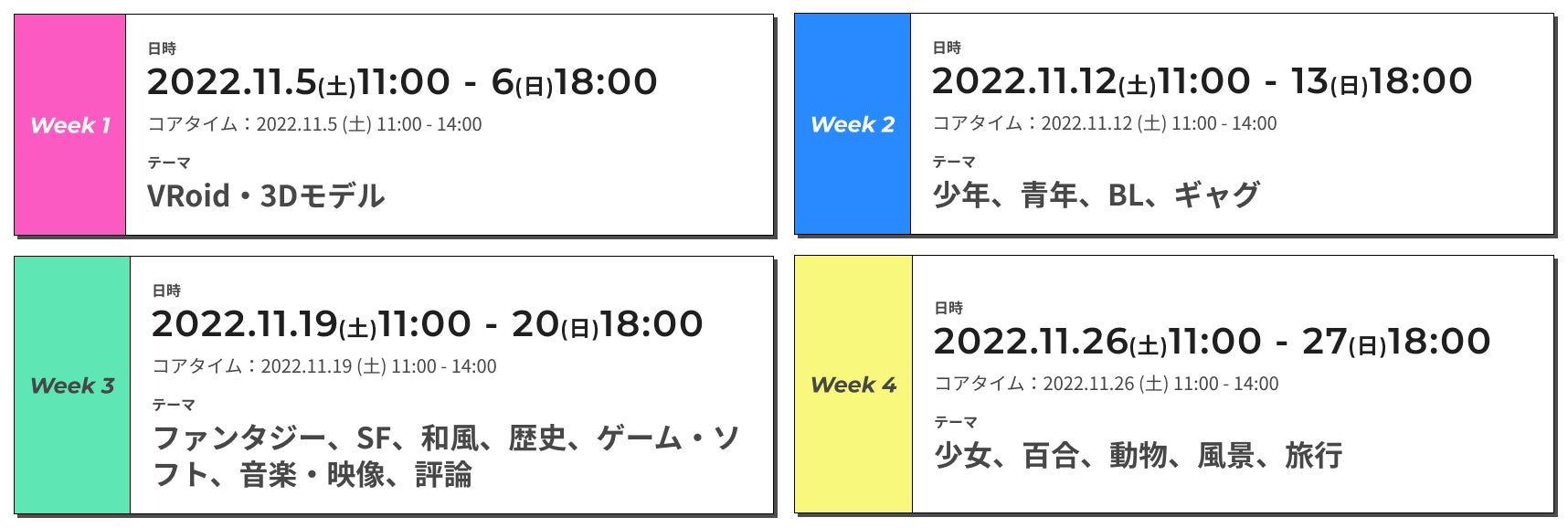 ※コアタイム:各開催初日11:00 - 14:00