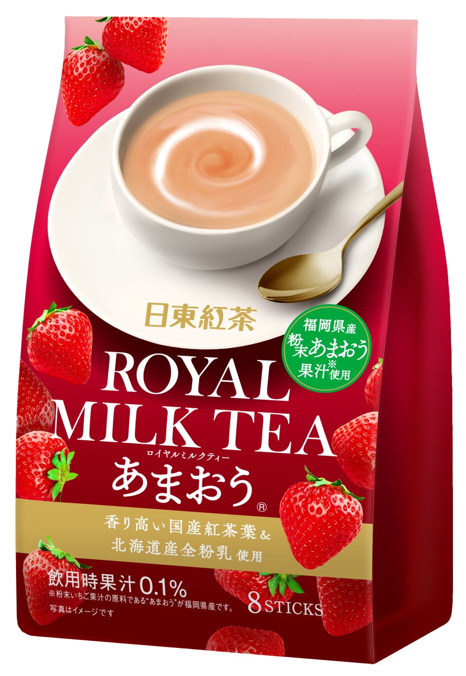 国産紅茶葉と北海道産全粉乳を使用したミルクティーに、福岡県産粉末あまおう果汁※を加えました。いちごの香りで、リラックスしたいときにおすすめです。