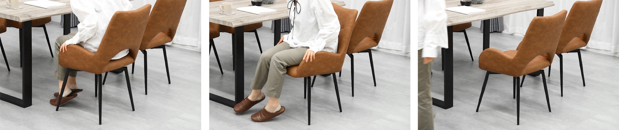 また、オートリターン機能によって、横向きに回転させた座面が自動で正面を向くため、椅子の向きがバラバラになることなくきれいに整頓されたダイニングスペースを維持することができます。ご家族や同居している方、お子様が食事後などに椅子を元に戻さず、チェアがバラバラで乱れてしまうこともございません。