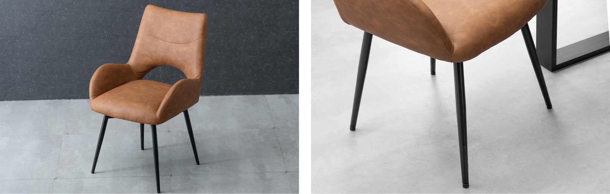 また、先端にかけて細く伸びるテーパー脚が引き締まった印象を与え、座面のヴィンテージな雰囲気と合わせて洗練されたデザインとなっております。