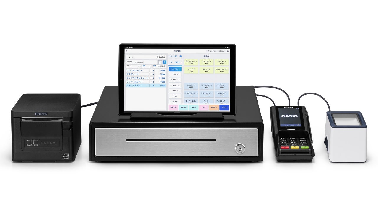 コンパクトで使いやすい機能的なタブレットレジで、自動釣銭機やバーコードスキャナなど周辺機器も充実。商品メニュー別の粗利管理や客層分析機能、飲食店向けのテーブル管理機能も標準搭載しており、幅広い業種で店舗のDX化をサポートします。