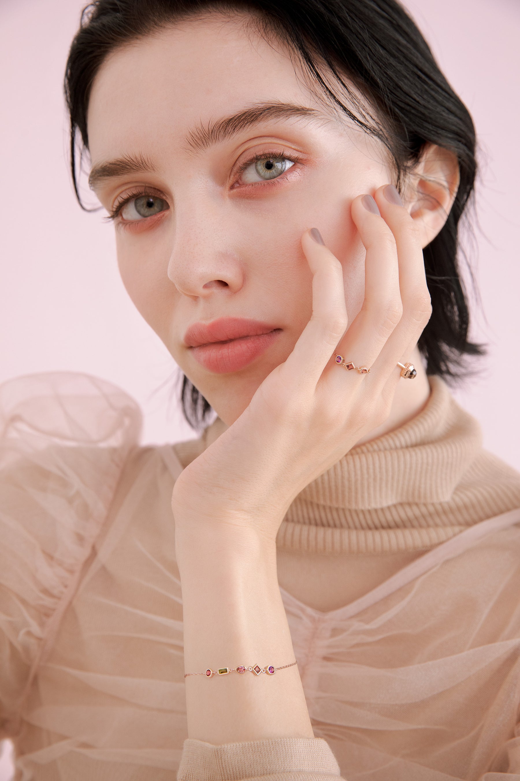 リング(左) ¥26,400 <K10PG/ピンクトルマリン/ロードライトガーネット/ガーネット/スモーキークォーツ> ◇
