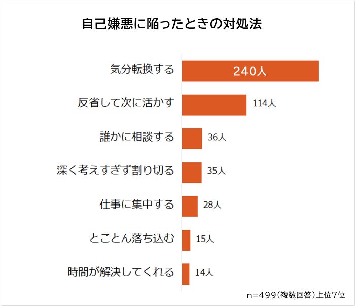 ・仕事で自己嫌悪に陥ったときの対処法1位は「気分転換する」