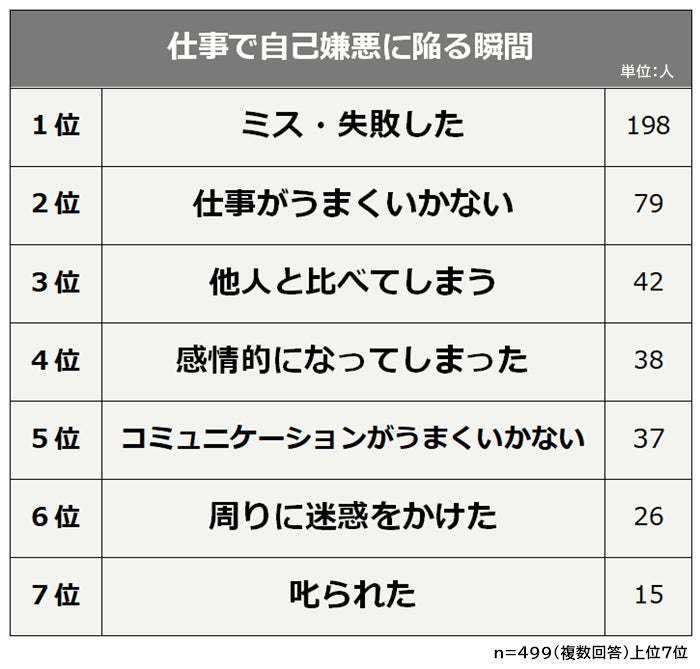 仕事で自己嫌悪に陥る瞬間は「ミス・失敗したとき」