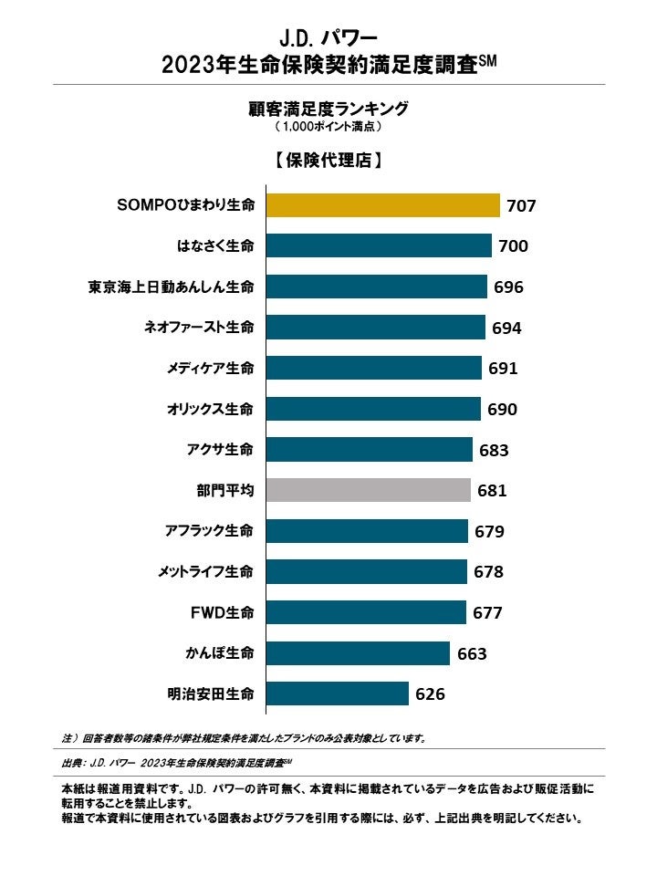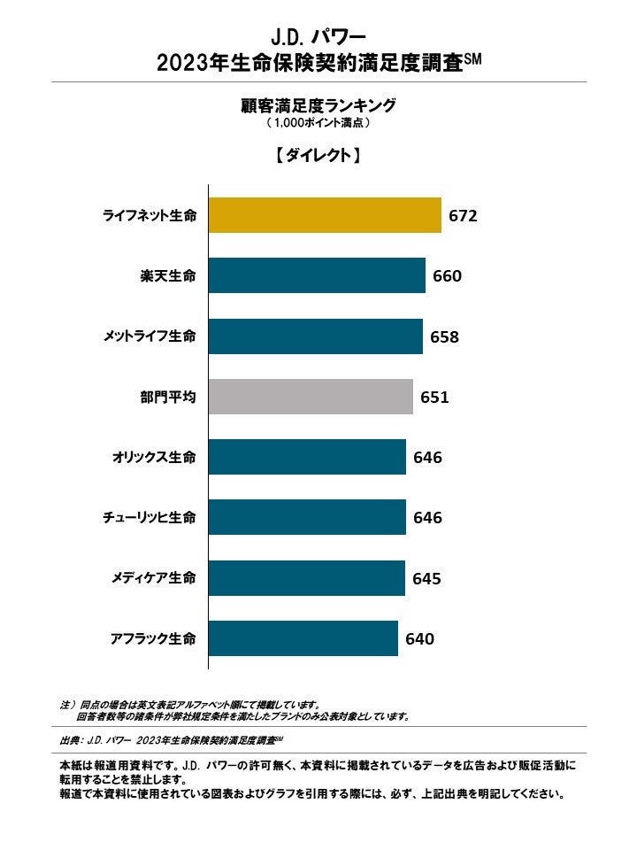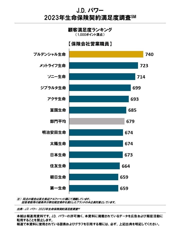 (本社:東京都港区、代表取締役社長:山本浩二、略称:J.D. パワー)は、J.D. パワー 2023年生命保険契約満足度調査℠の結果を発表した。