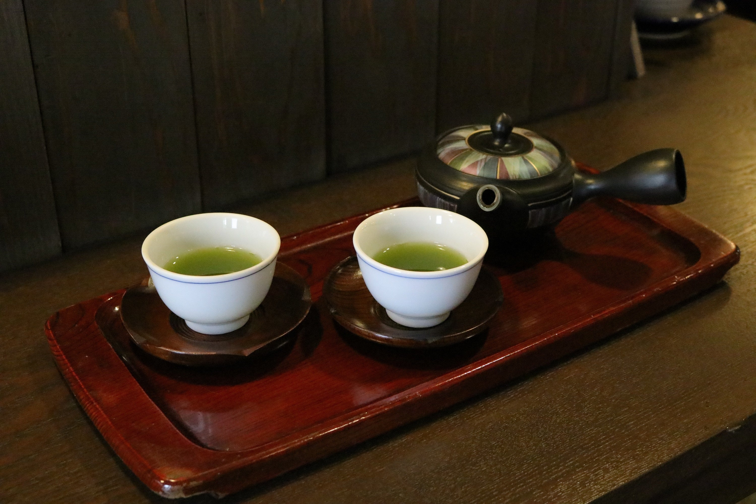 ■内容 食後、急須で淹れる「八女新茶」を提供