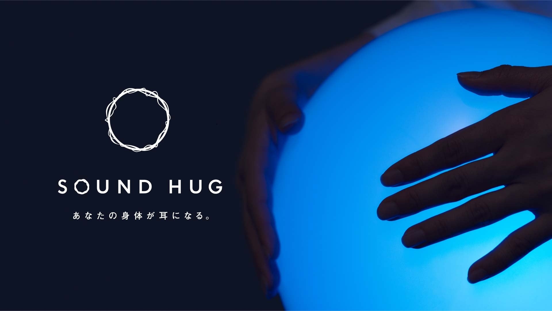 「SOUND HUG」(サウンドハグ)は、抱きかかえることで⾳楽を視覚と触覚で感じられる球体型デバイスです。 楽曲全体の⾳・特定の楽器の⾳をMIXして、球体に内蔵された振動スピーカーで再⽣することで⾳楽の振動を触覚で感じる事ができます。また、⾳楽に合わせて球体が発光する仕組みになっていて、振動だけでは伝わりづらい曲の旋律を視覚でも感じることができます。SOUND HUG によって、⽿の⾃由・不⾃由にかかわらず、単に⽿で感じるだけではない、⾳楽を⾝体で楽しむという全く新しい⾳楽体験を提案しています。