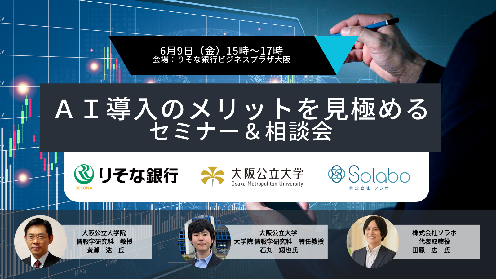 【りそな銀行×大阪公立大学×SoLabo】AI導入のメリットを見極めるセミナー&個別相談会開催