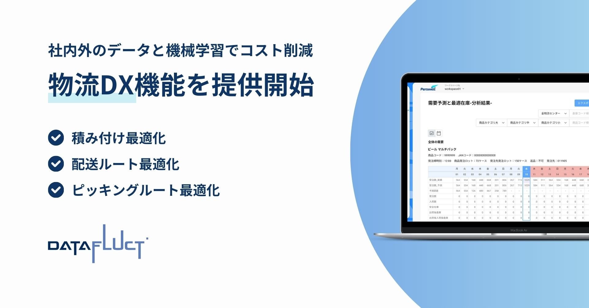 DATAFLUCT、機械学習と外部データ活用による「物流DX」支援ソリューションを提供開始。積み付け最適化、配送ルート最適化、ピッキングルート最適化機能で、業務自動化・コスト削減を支援。