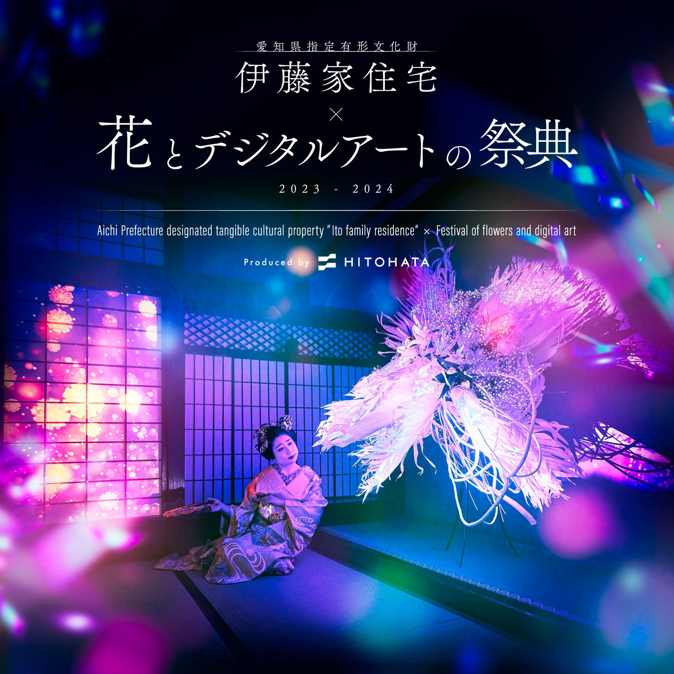 株式会社一旗がプロデュースする「愛知県指定有形文化財 伊藤家住宅×花とデジタルアートの祭典 2023-2024」を2023年12月22日(金)から2024年1月14日(日)まで愛知県指定有形文化財・伊藤家住宅(愛知県名古屋市)で開催します。(主催:株式会社一旗 共催:名古屋市)この催しは、四間道の町並みのシンボル・伊藤家住宅を特別に公開し(通常は非公開)、華道や書道、舞妓・芸妓文化など日本の伝統的な文化芸術とプロジェクションマッピング・デジタルアートとのコラボレーションによる展覧会です。入場は有料で、事前のオンラインチケット購入を推奨しております。江戸時代の名古屋城下町の面影を残す貴重な建物を舞台に、日本が世界に誇る文化芸術の数々とデジタルアートが融合した幻想的なアート空間をぜひお楽しみください。