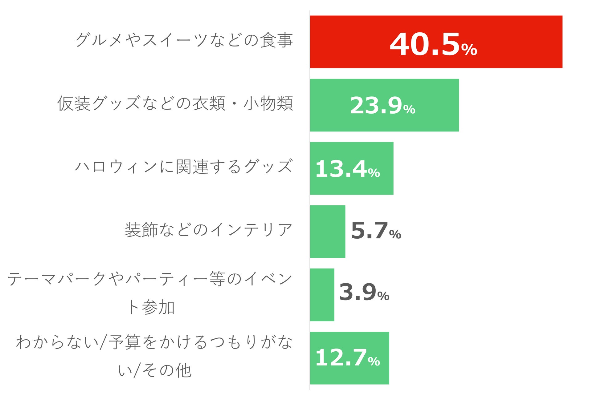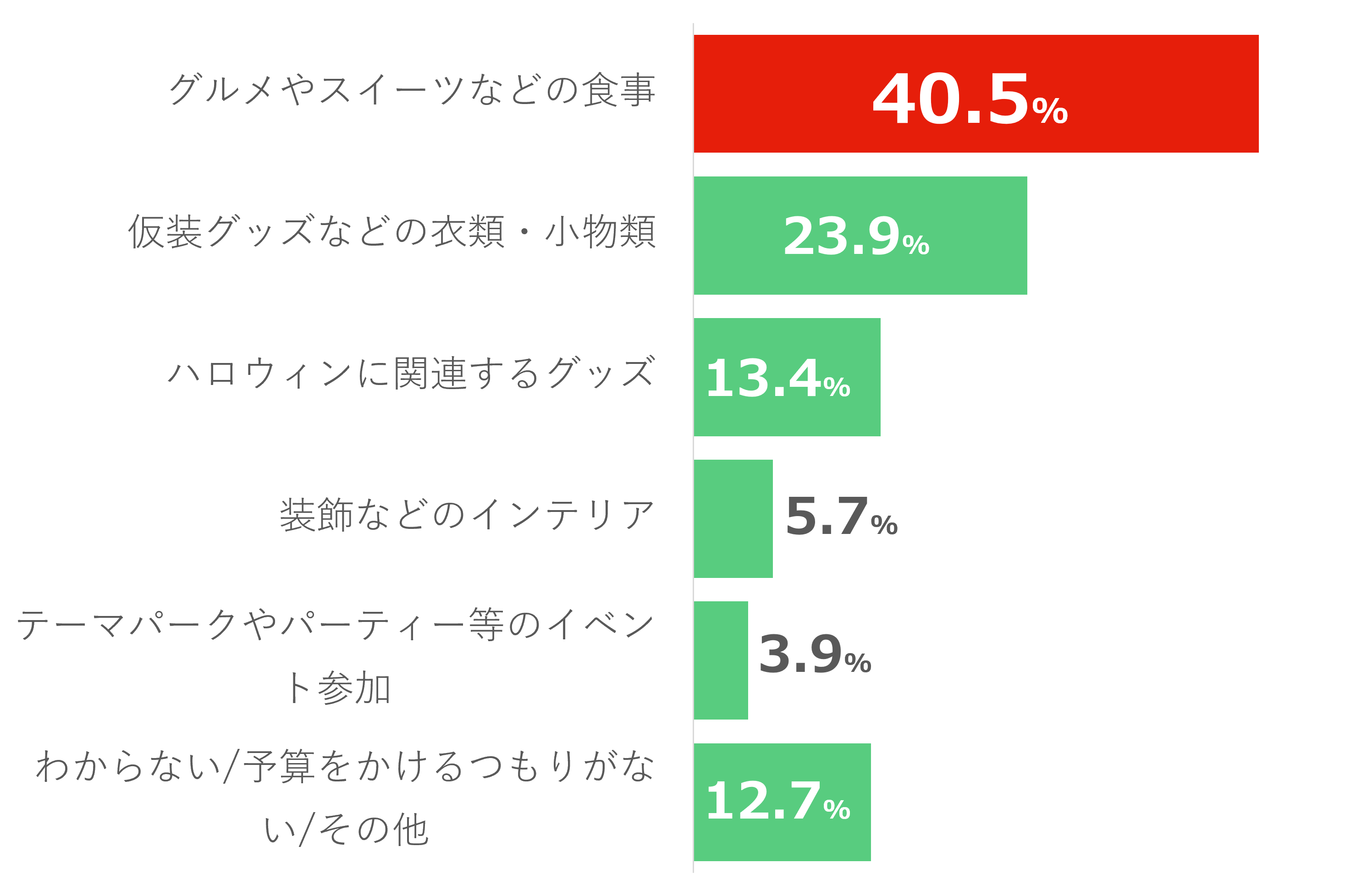 ハロウィンにかける予算はグルメやスイーツなどの食事が最も多く、40.5%が回答。