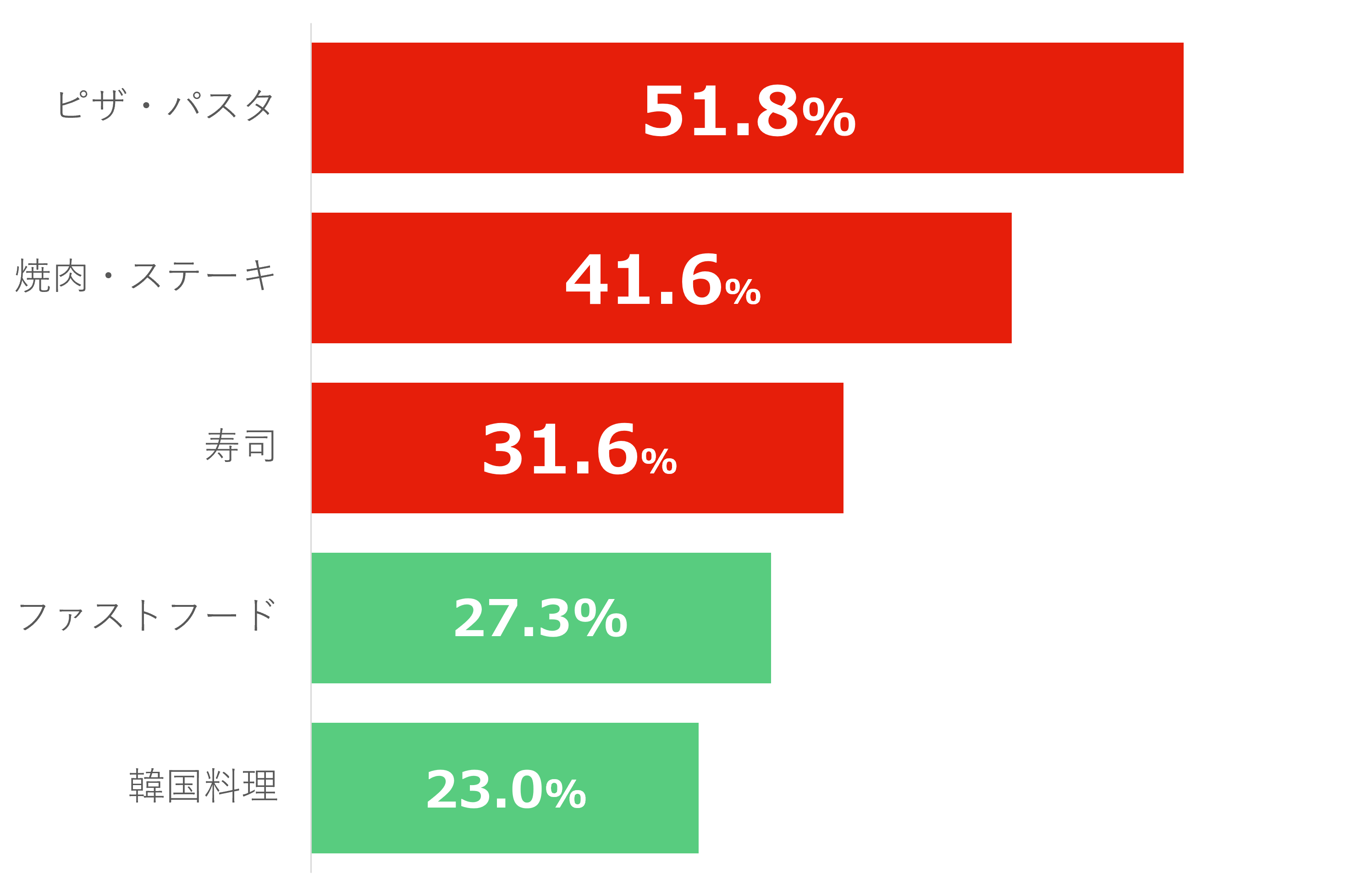 ハロウィンをイエナカで楽しむ予定の方の48.5%が、デリバリーサービスを“利用予定”と回答しました。また、ハロウィンの人気グルメ1位はピザ・パスタ、2位は焼肉・ステーキと普段はなかなか食べない、そして特別感のあるグルメが選ばれやすいようです。