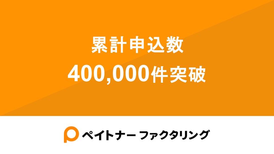 この度、フリーランスや小規模事業者の資金繰り負担の軽減をサポートしてきた「ペイトナーファクタリング」の累計申込件数が400,000件を突破したことをお知らせいたします。