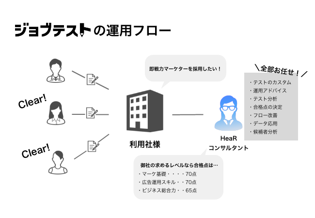 「あいまい採用を解決する」をコンセプトに、候補者のスキルをデータで見える化できるスキルテストSaaSです。採用コストの削減はもちろん、データドリブンな採用を促進します。採用コンサルタントがサポートにつくため、スキルテストの設計から分析も簡単にできるのが特徴です。