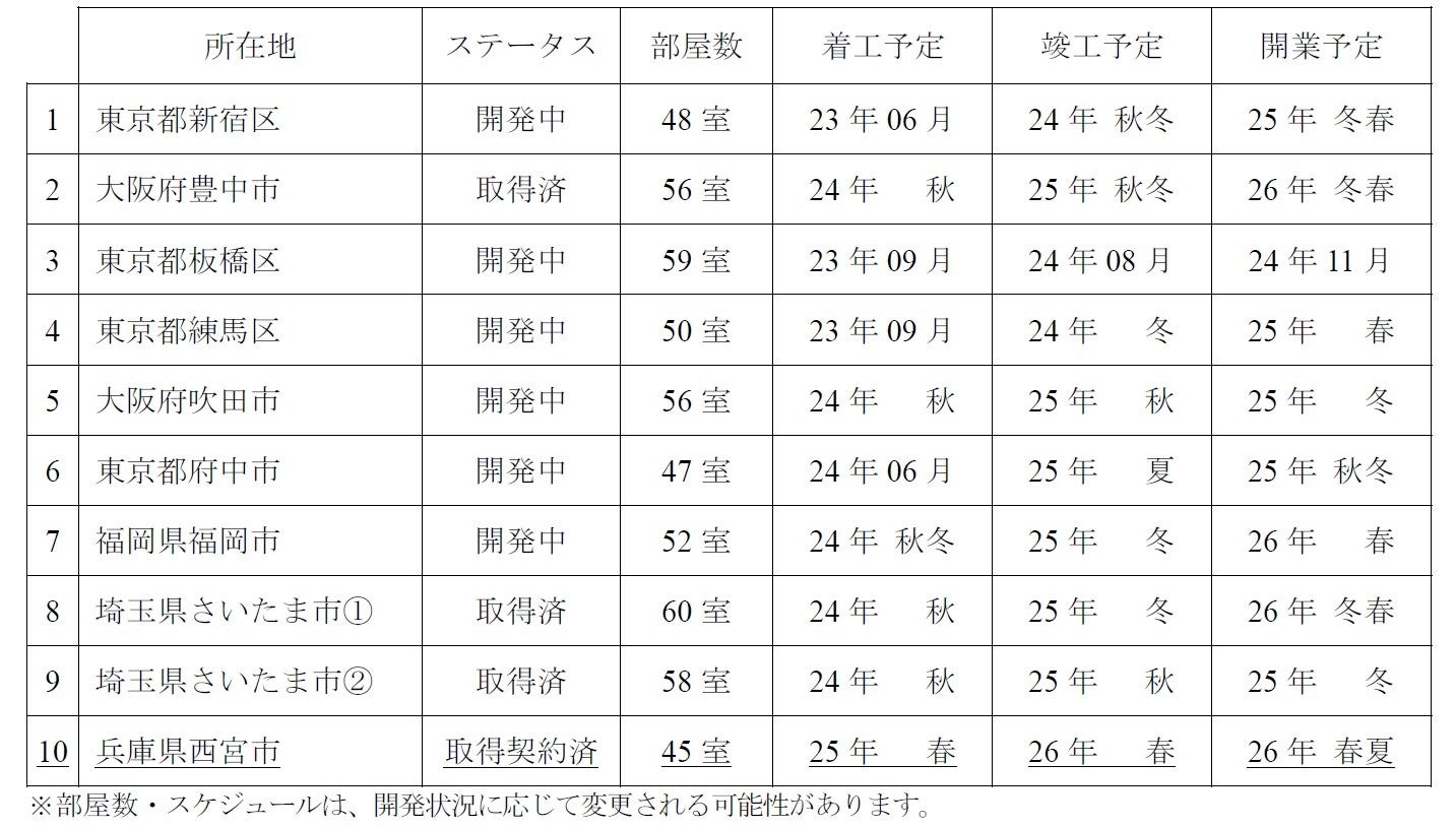 ■ヘルスケア施設開発予定一覧