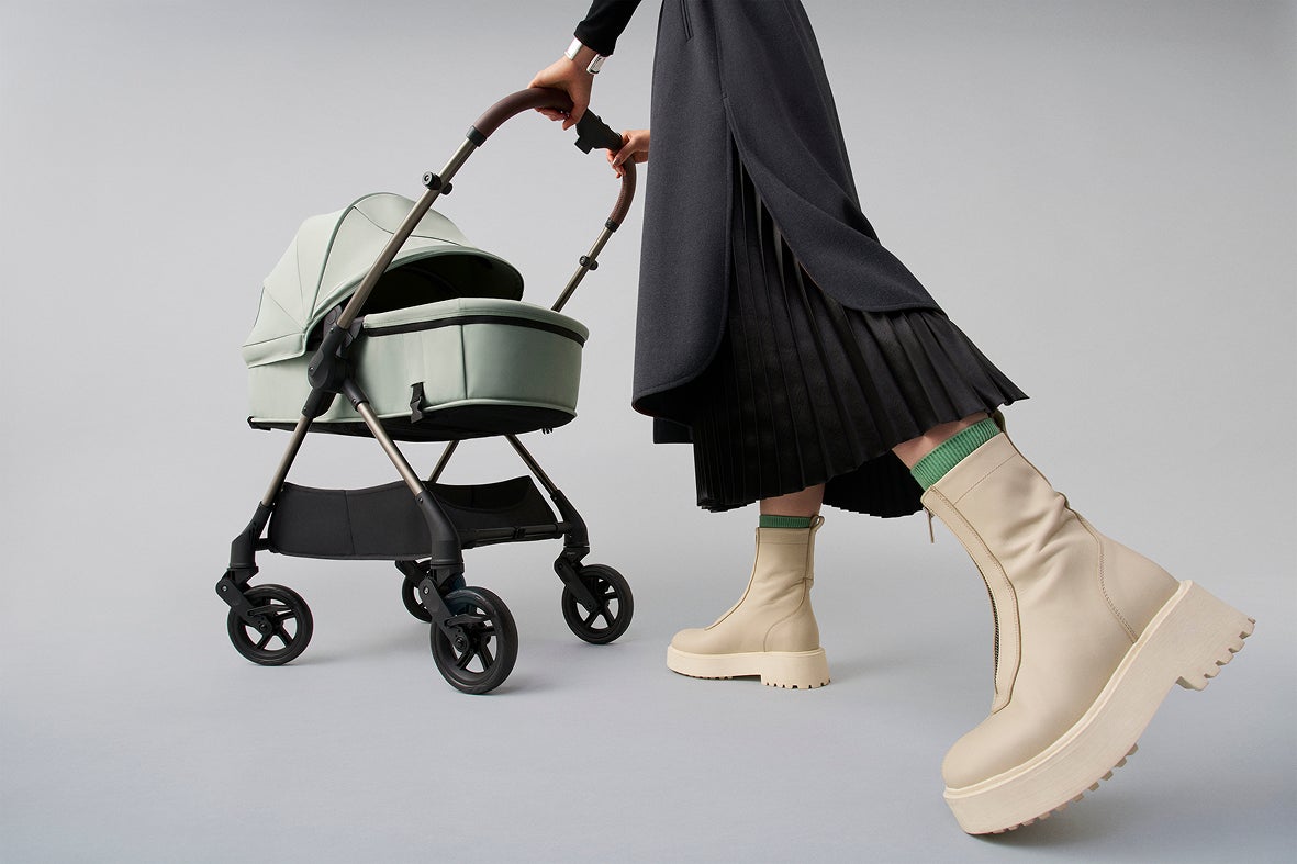 新商品「epa(エパ)」は、足元までぐるりと包み込む18cmの壁と屋根のような幌を備えているため、風や花粉、不意に直接何かにぶつかるなどの外の刺激から赤ちゃんを守り、より一層安心して外出することができるベビーカーです。シートは180°フルフラットになる構造なため、外出時もまるで家のベビーベッドのような居心地の良い空間を実現しました。さらに、日本唯一(※1)の独自構造として、面倒なシートの付け替えなしに「コットモード」から背もたれを起こした「チェアモード」に、簡単にスタイルチェンジすることができます。
