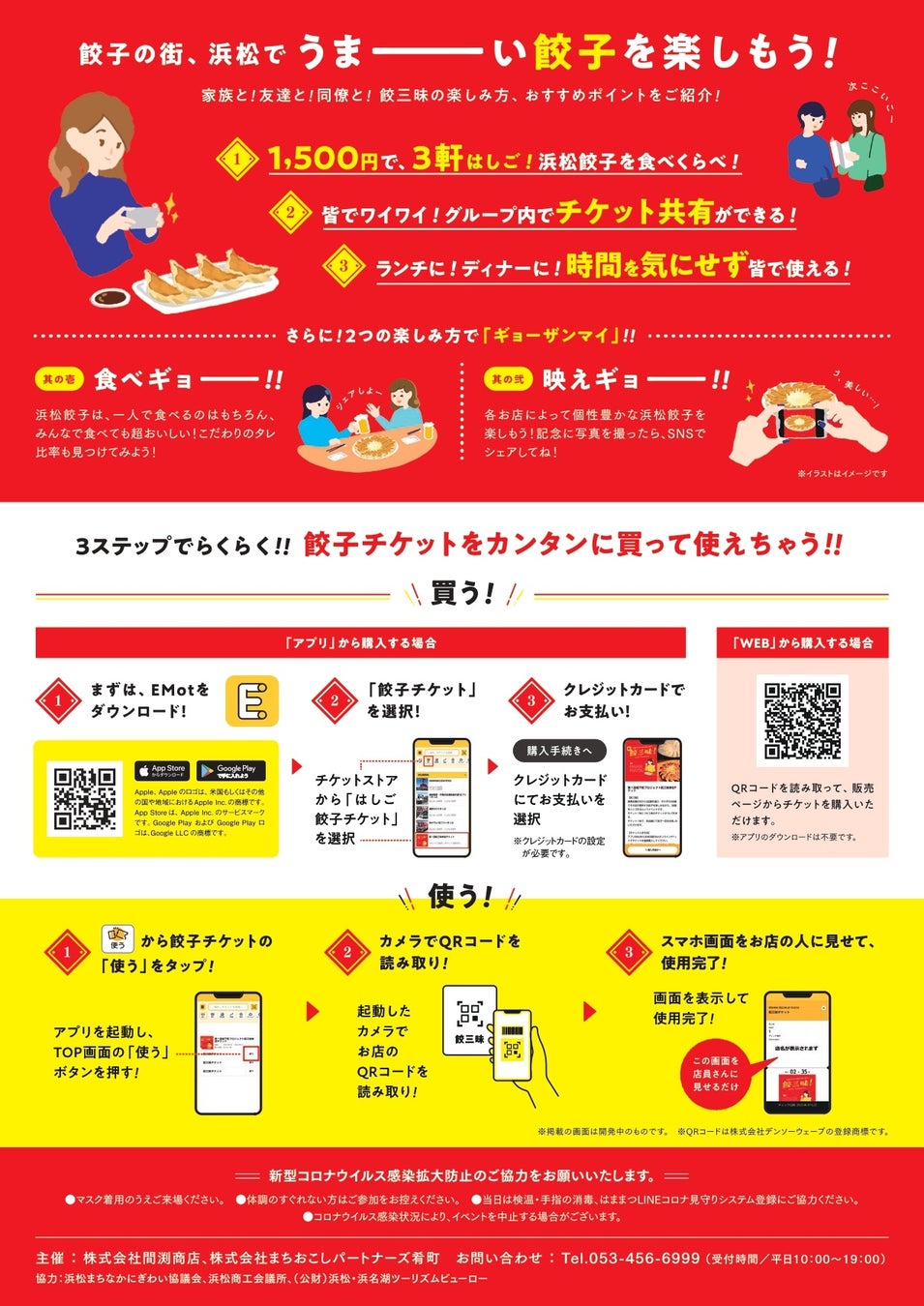 3.参加方法:EMot(アプリまたは専用WEBサイト)にて各自チケットを購入後、参加店で餃子メニュー1皿を注文し、楽しんでいただくイベントです。