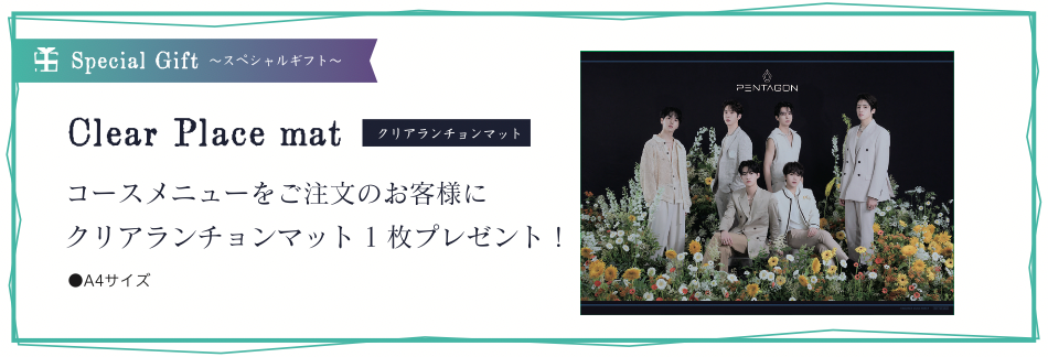 コースメニューをご注文のお客様にクリアランチョンマットを1枚プレゼント致します。