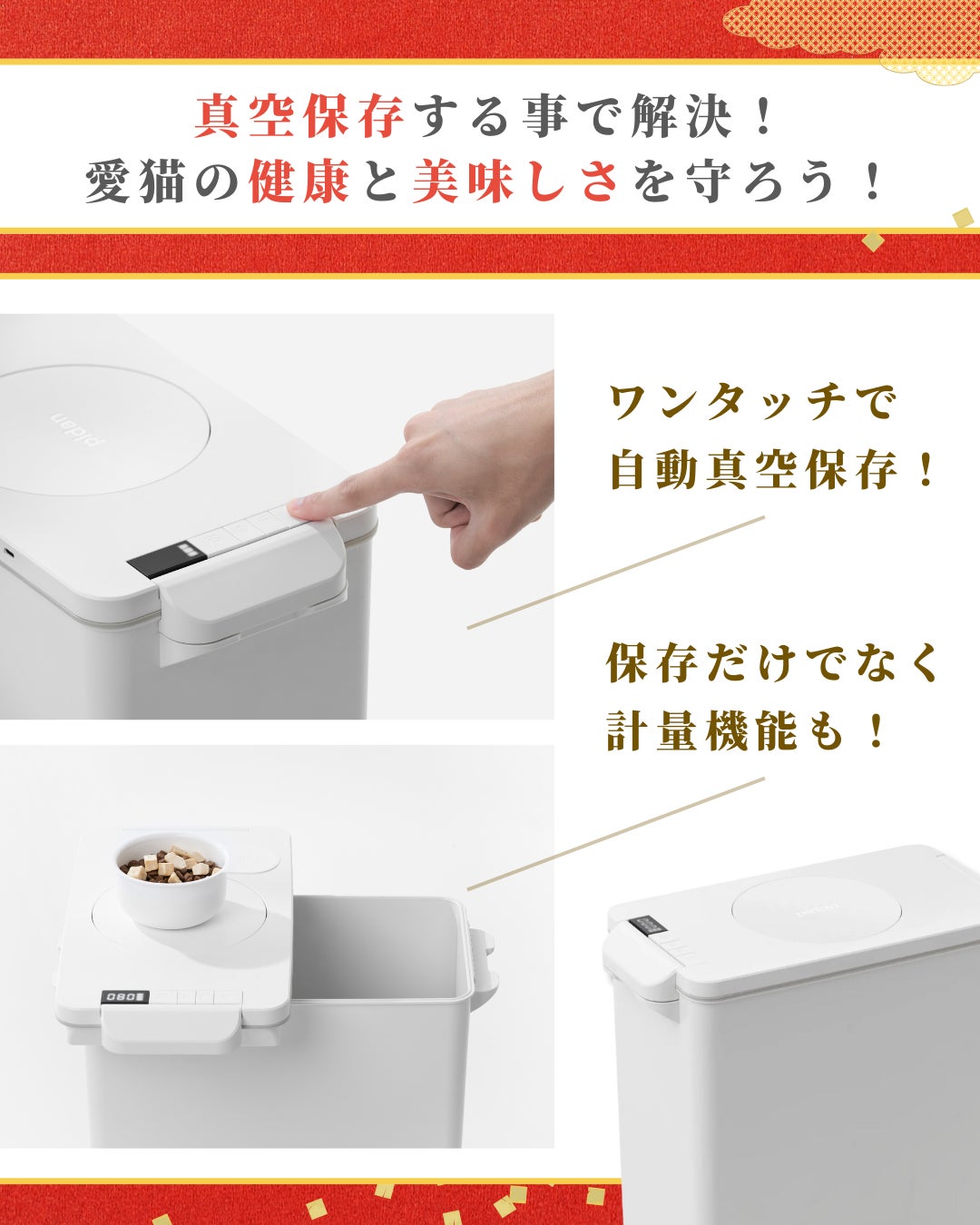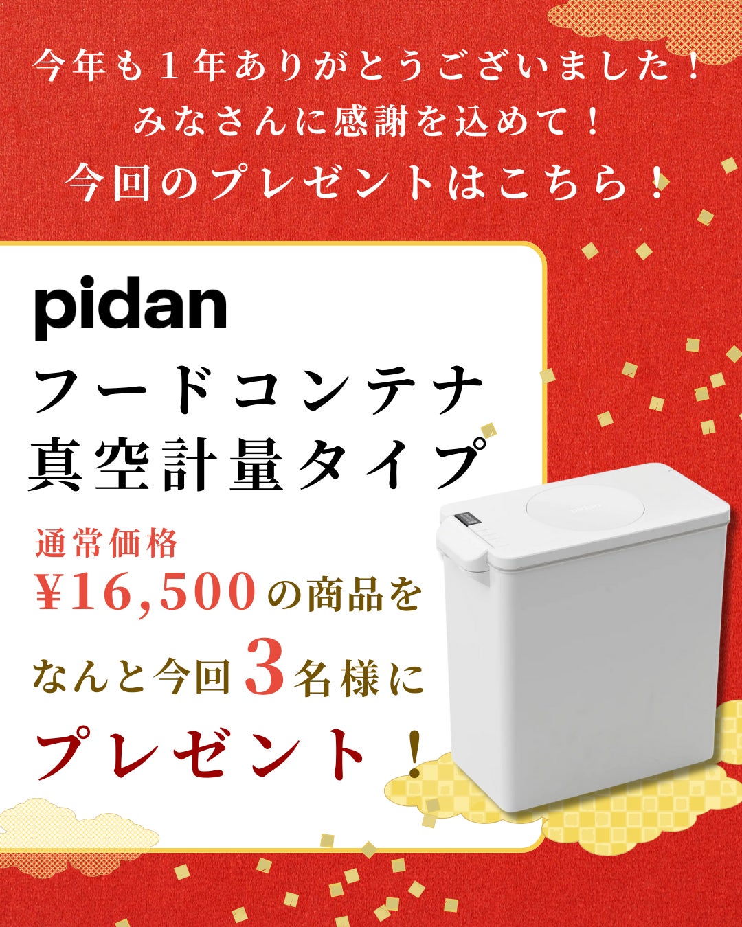 応募した方の中から、合計3名様にpidanのペット用フードコンテナ真空計量タイプをプレゼント。