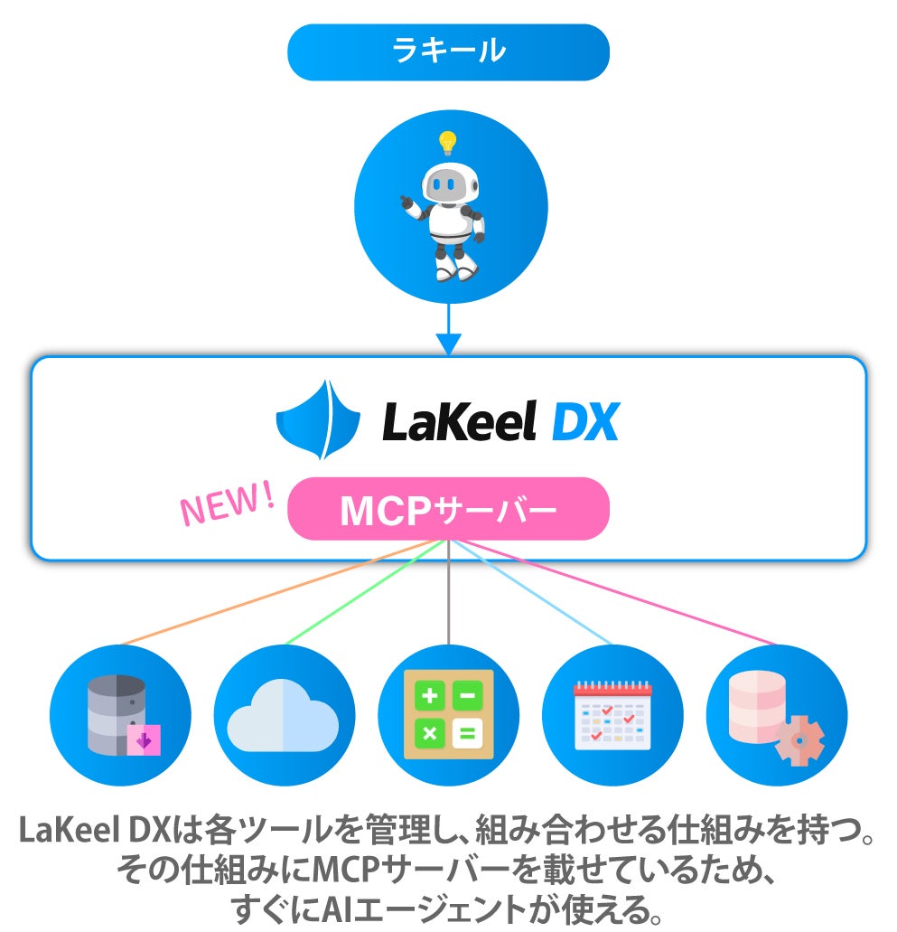 株式会社ラキール(本社:東京都港区、代表取締役社長:久保 努、以下 「ラキール」)は、クラウドシステム開発・運用基盤「LaKeel DX」において、Anthropic社が提唱する新しい共通規格「MCP(Model Context Protocol)」に対応し、AI機能を大幅に強化したことをお知らせします。これにより、企業は既存の技術資産をAIエージェントが扱う「道具」として再利用が可能になります。AIが自律的に業務遂行する「自働化」を実現し、生産性の向上に貢献します。