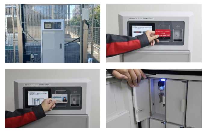 ⑦鍵管理機に会員カードまたはQRコードおよび免許証をタッチ、指定キーを取り出し、車両をレンタル