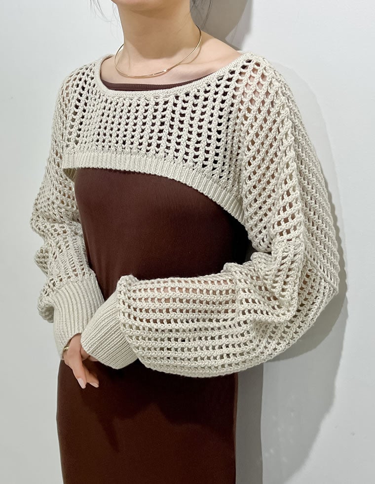 メッシュ編みとコンパクトな丈感が今年らしいニットトップスです。