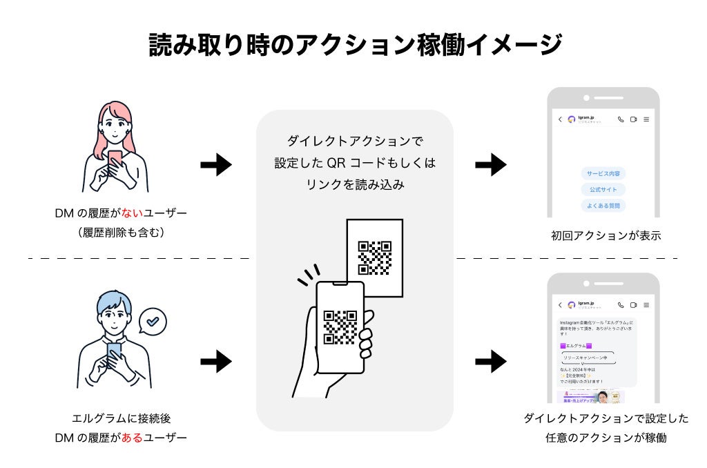 Instagram(インスタ)システム「エルグラム」に、QRコードやURLを読み込んだユーザーに対してアクションを稼働できる機能を追加。クーポン・特典の配布やポイントカードとしての利用が可能。
