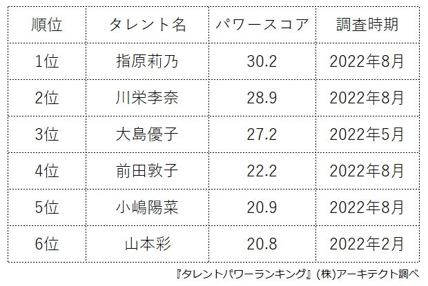 本ランキングは、2022年8月度に実施したタレント調査データ(一部過去実施データ)を利用し、タイトルに応じてランキング形式でまとめたものです。