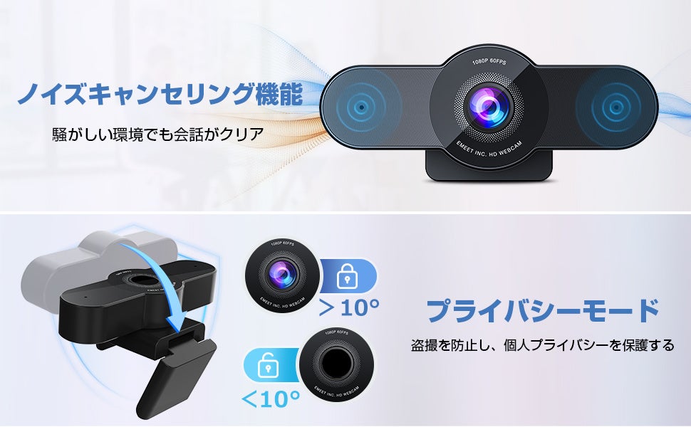 EMEET C970 webカメラはEMEET会社の2021年発売のライブストリーミング向けのカメラです。鮮明、カラフル、高コントラストの画像を維持しながら、1080P 60フレーム/秒でスムーズかつ遅延のない画質を実現し、さまざまな画像プリセットを選択することができ、生き生きとした映像をストリーミングのニーズに応じます。また、配信映像を美しく維持し、配信者自身とゲームの動画のクオリティを同じレベルで配信する事ができます。