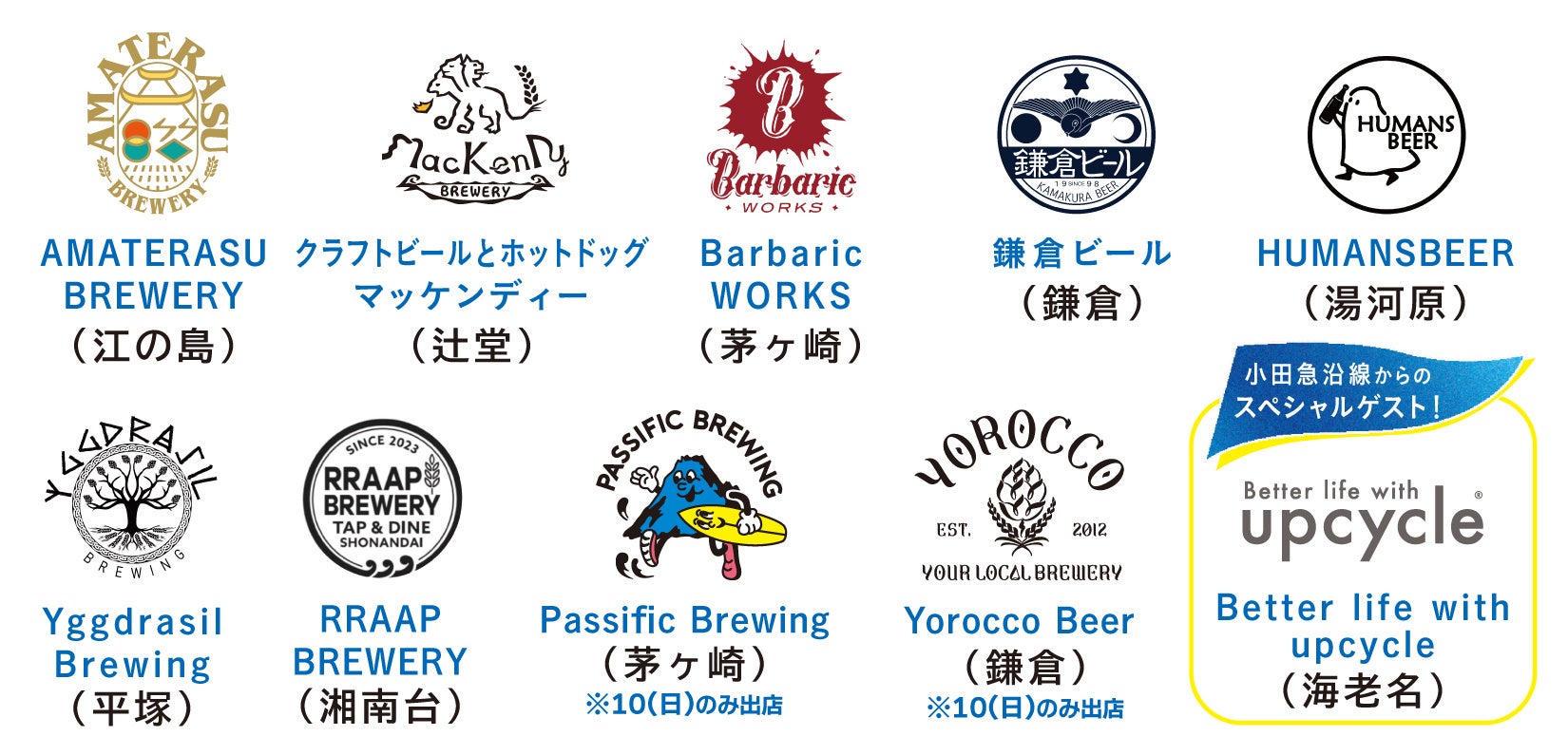 AMATERASU BREWERY(江の島)、クラフトビールとホットドッグ マッケンディー(辻堂)、Barbaric WORKS(茅ヶ崎)、鎌倉ビール(鎌倉)、HUMANSBEER(湯河原)、Yggdrasil Brewing(平塚)、RRAAP BREWERY(湘南台)