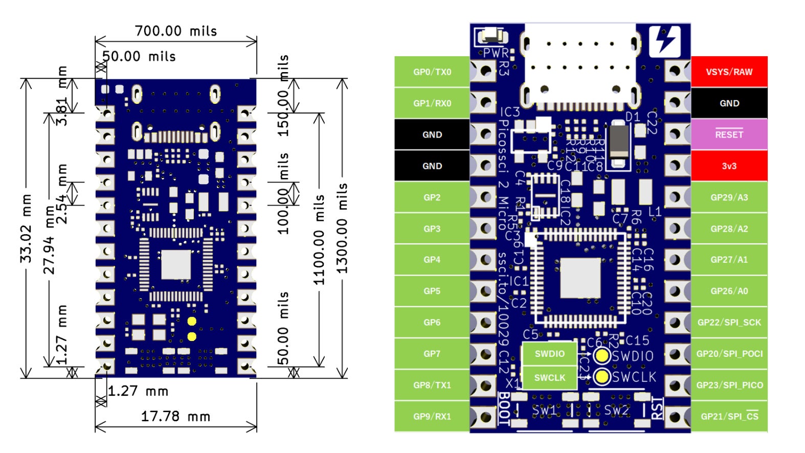 「Picossci 2 Micro」は、RP2350Aと、コアとなる周辺回路をまとめたマイコンボードです。